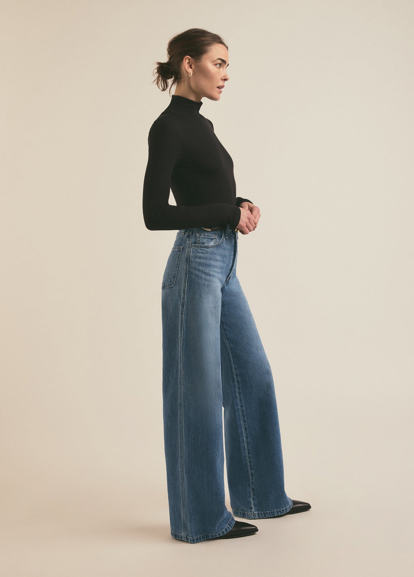 FINAL SALE - NO RETURN / EXCHANGEThe Masha Shortie is a 29-inch full-length, five-pocket style with an 11.5-inch high rise and ideal proportions for those a bit shorter. The wide-leg fit is relaxed at the hips and thighs, with a clean hem that’s designed to sweep the floor. Made from rigid denim in a vintage