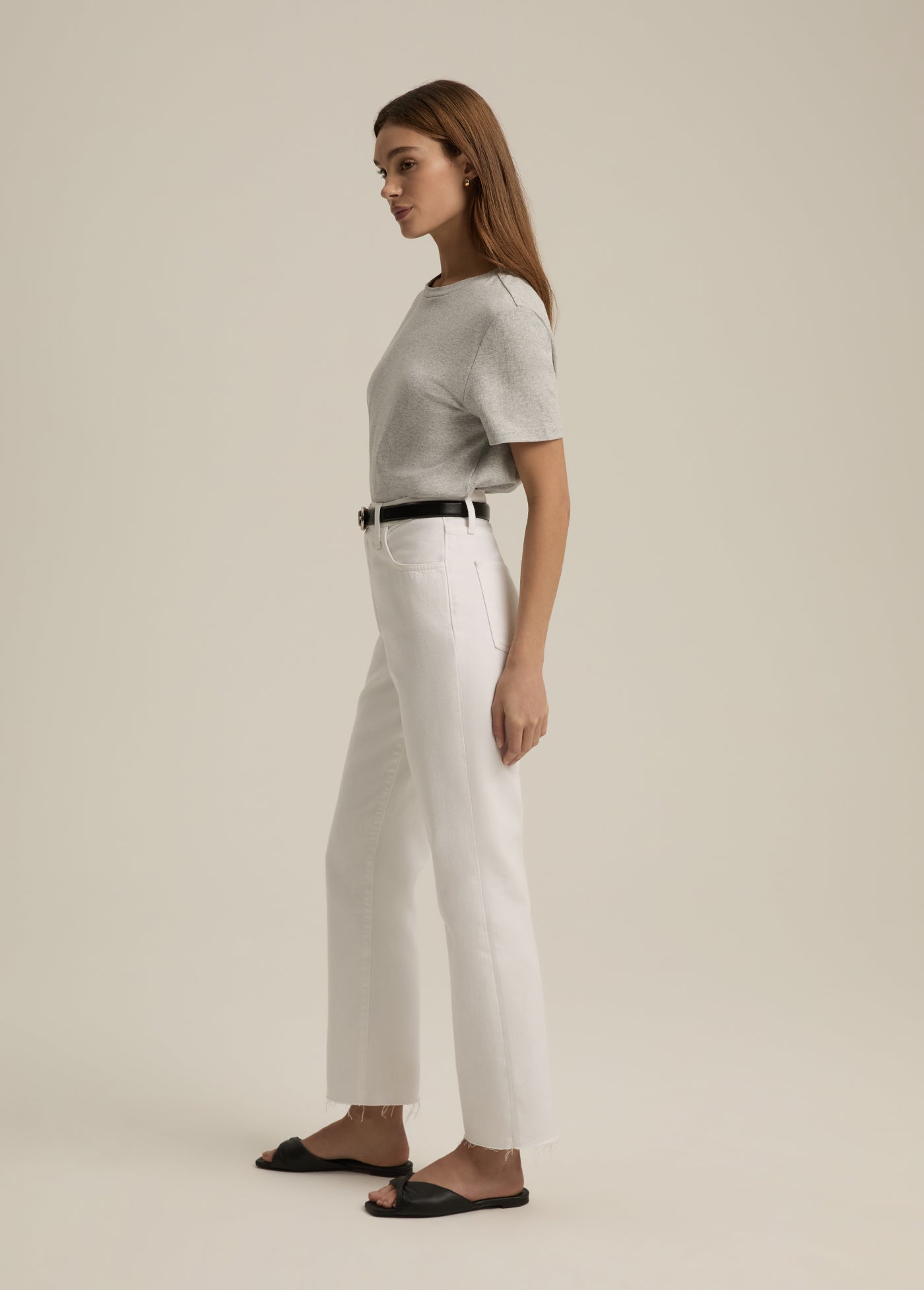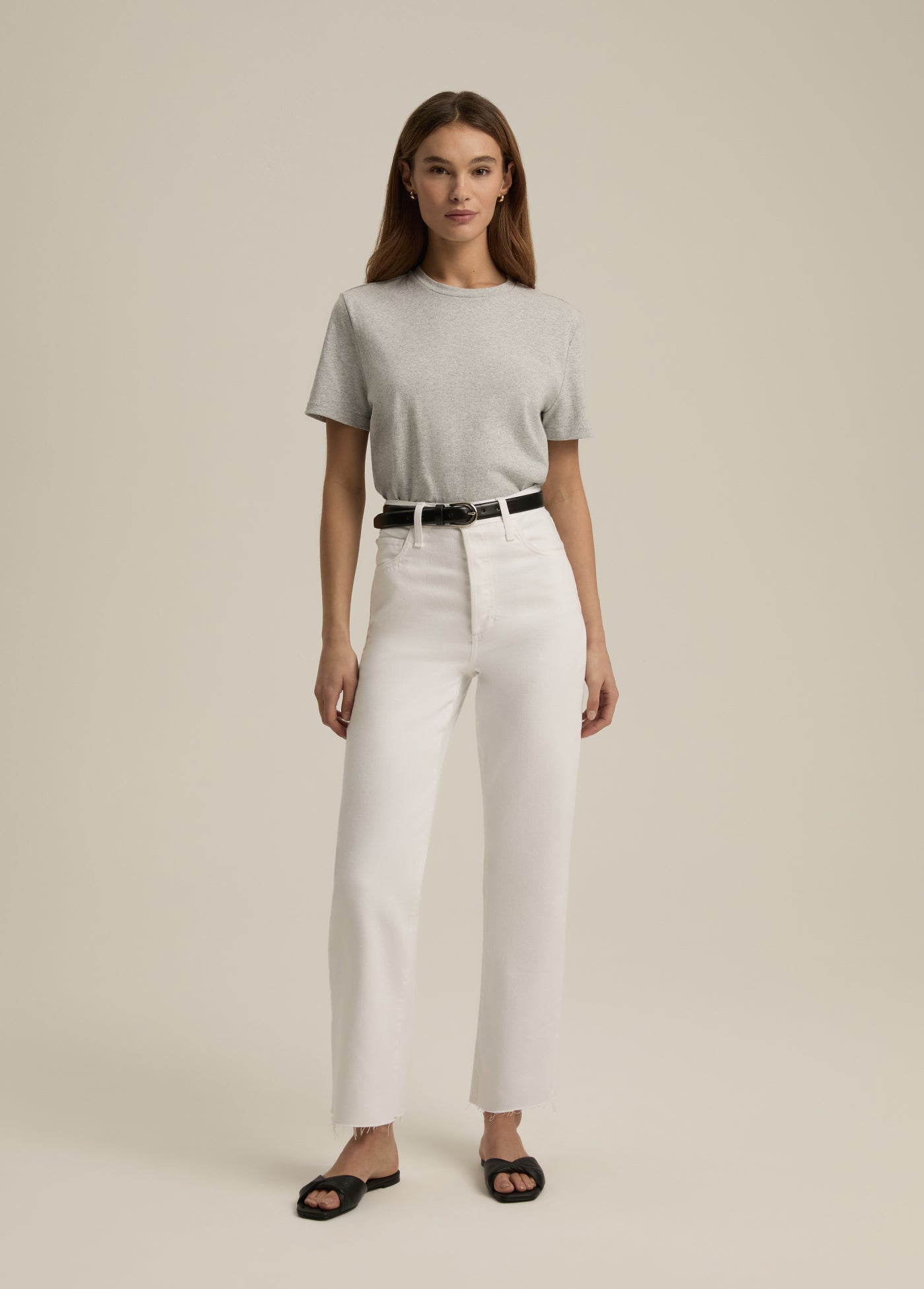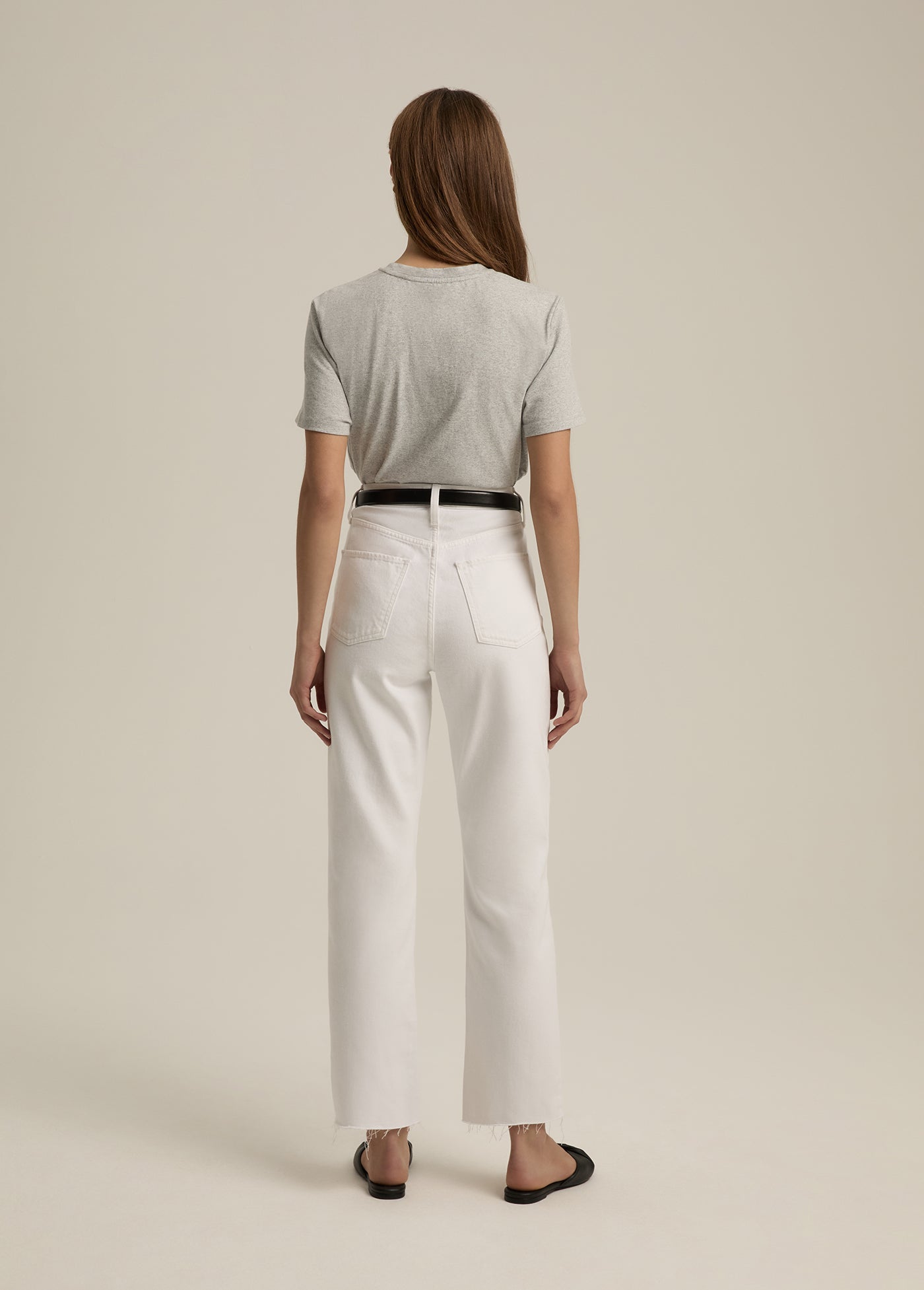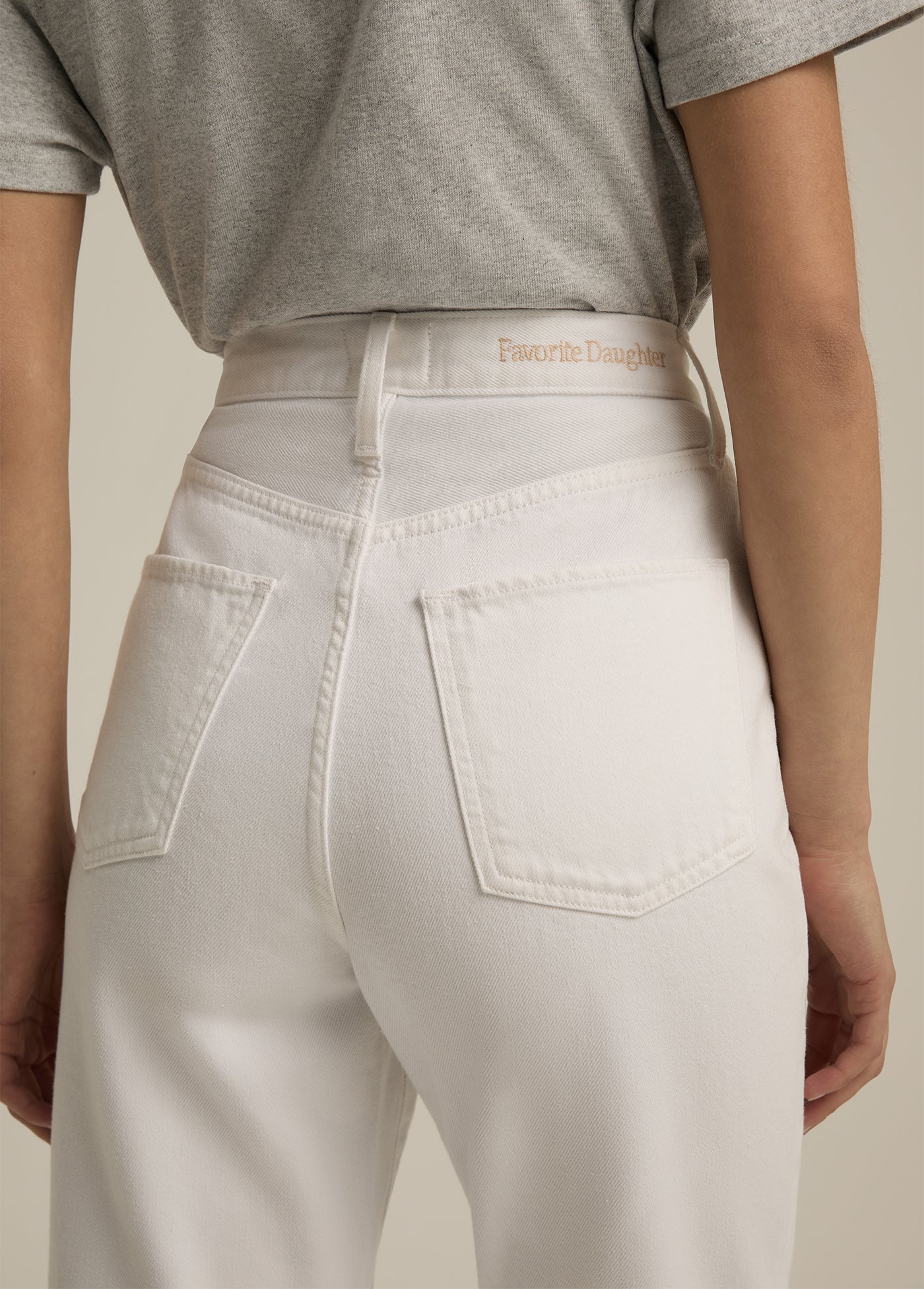 The extreme 11.75" high rise of these relaxed, 28.5" straight legs is easy at the hip and flattering at the waist. Cut from rigid white denim, these jeans get better after every wear.