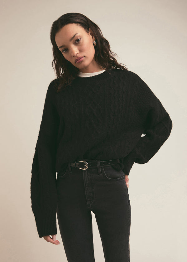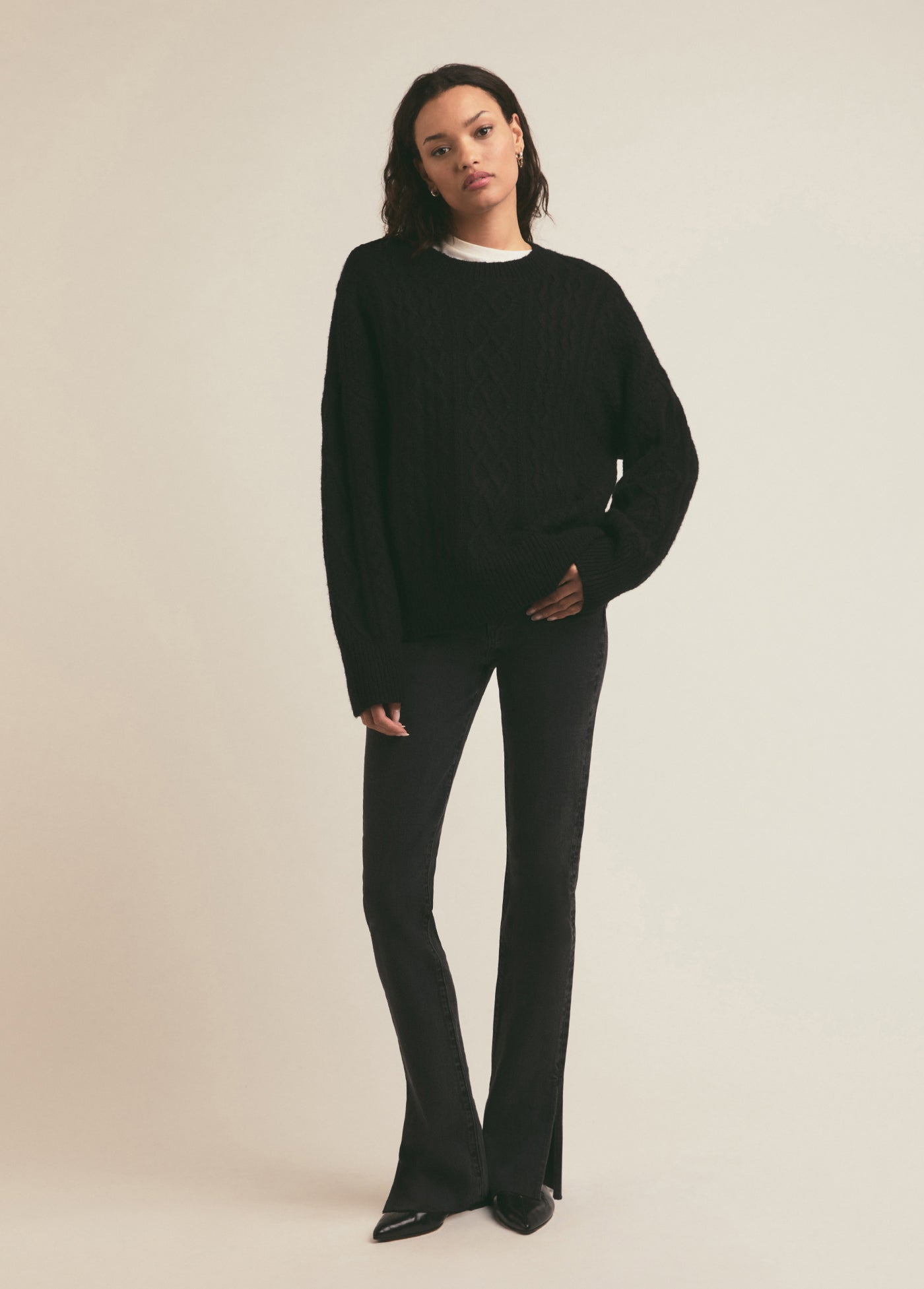 A cable-knit sweater with just enough slouch. Knit from a soft blend of cashmere and merino wool, the oversized styling makes for the perfect French tuck in your favorite jeans or layer it over a slip dress for an of-the-moment look.