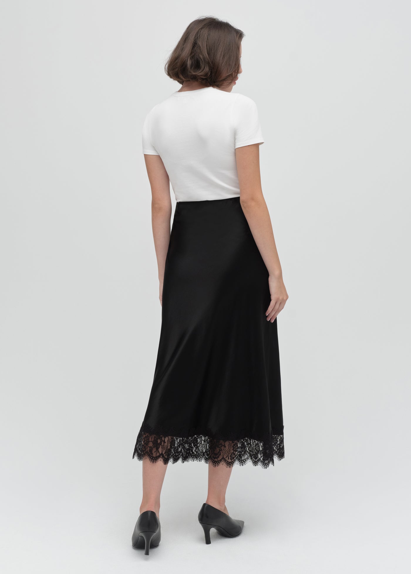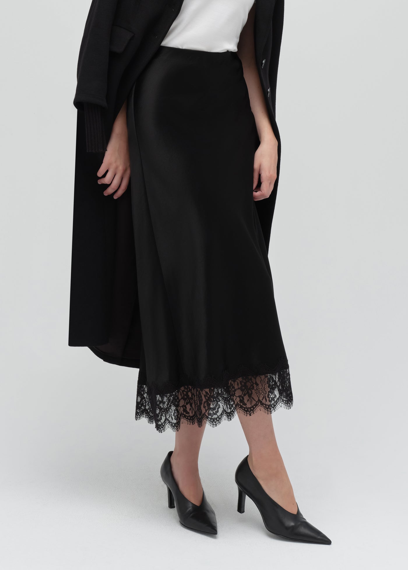 Inspired by everyone’s favorite skirt, our new version is cut from textured fabric with a subtle sheen. Perfectly proportioned for petites, the bias-cut silhouette sits high on the waist, skims the body, and falls into a billowy fit with 52.5" length. The lace trim is the finishing touch (a little thrill we can’t resist).