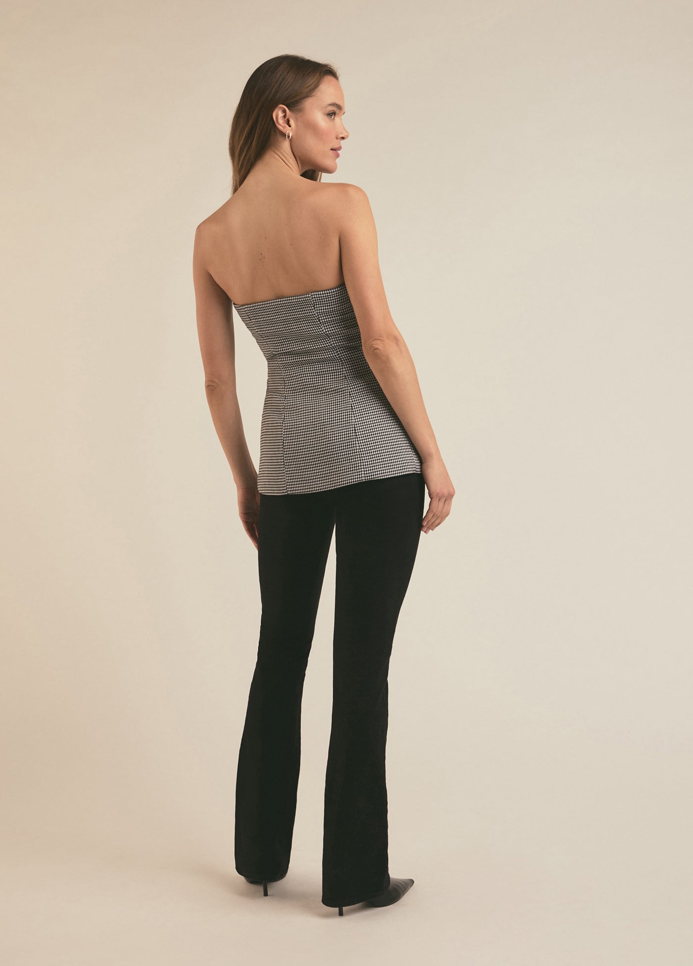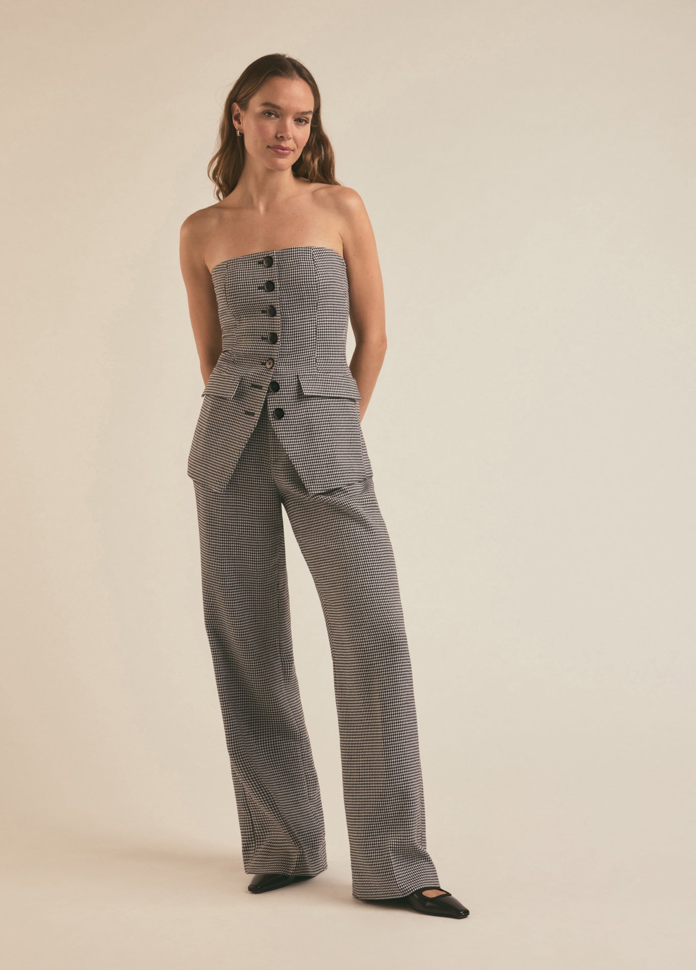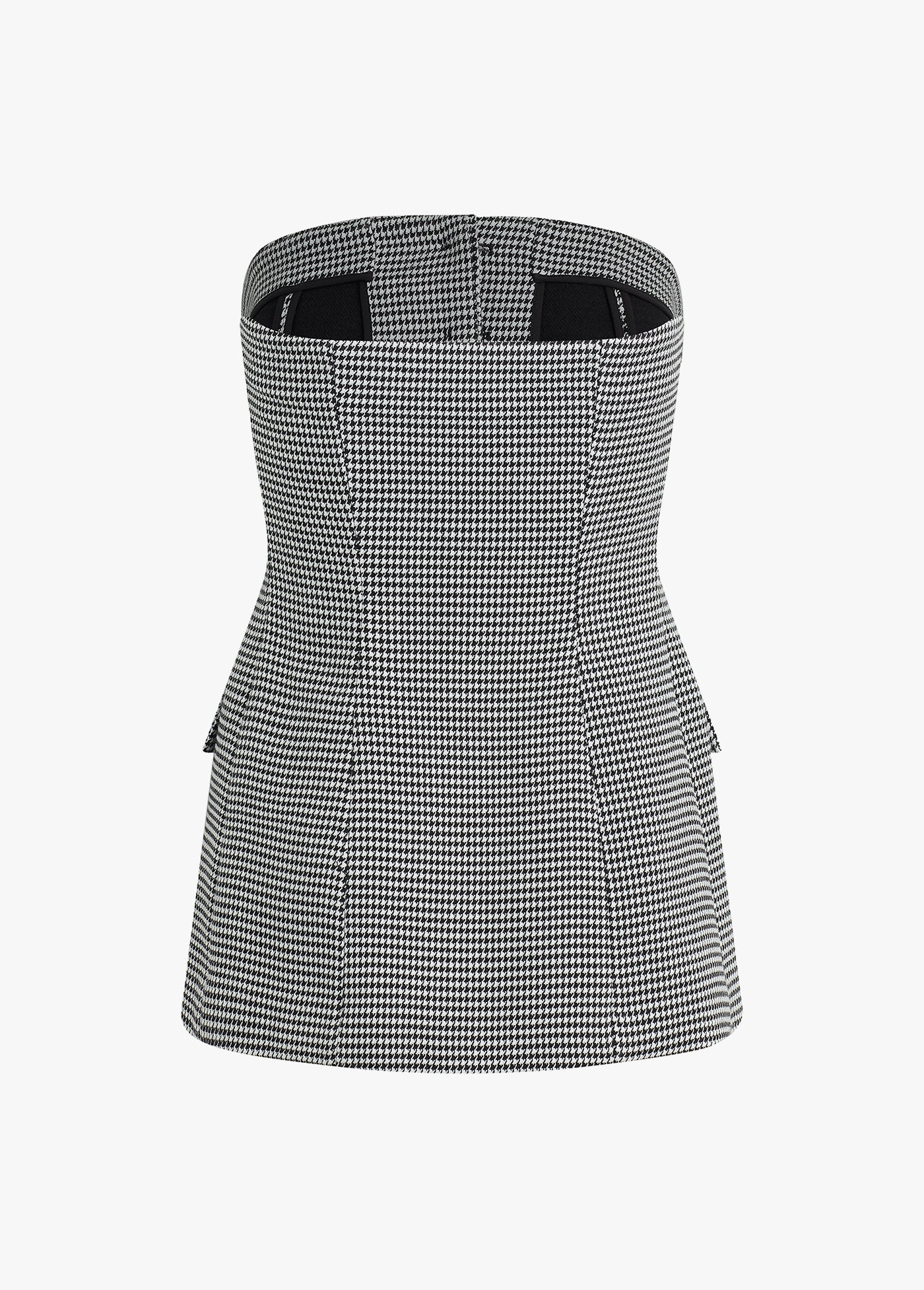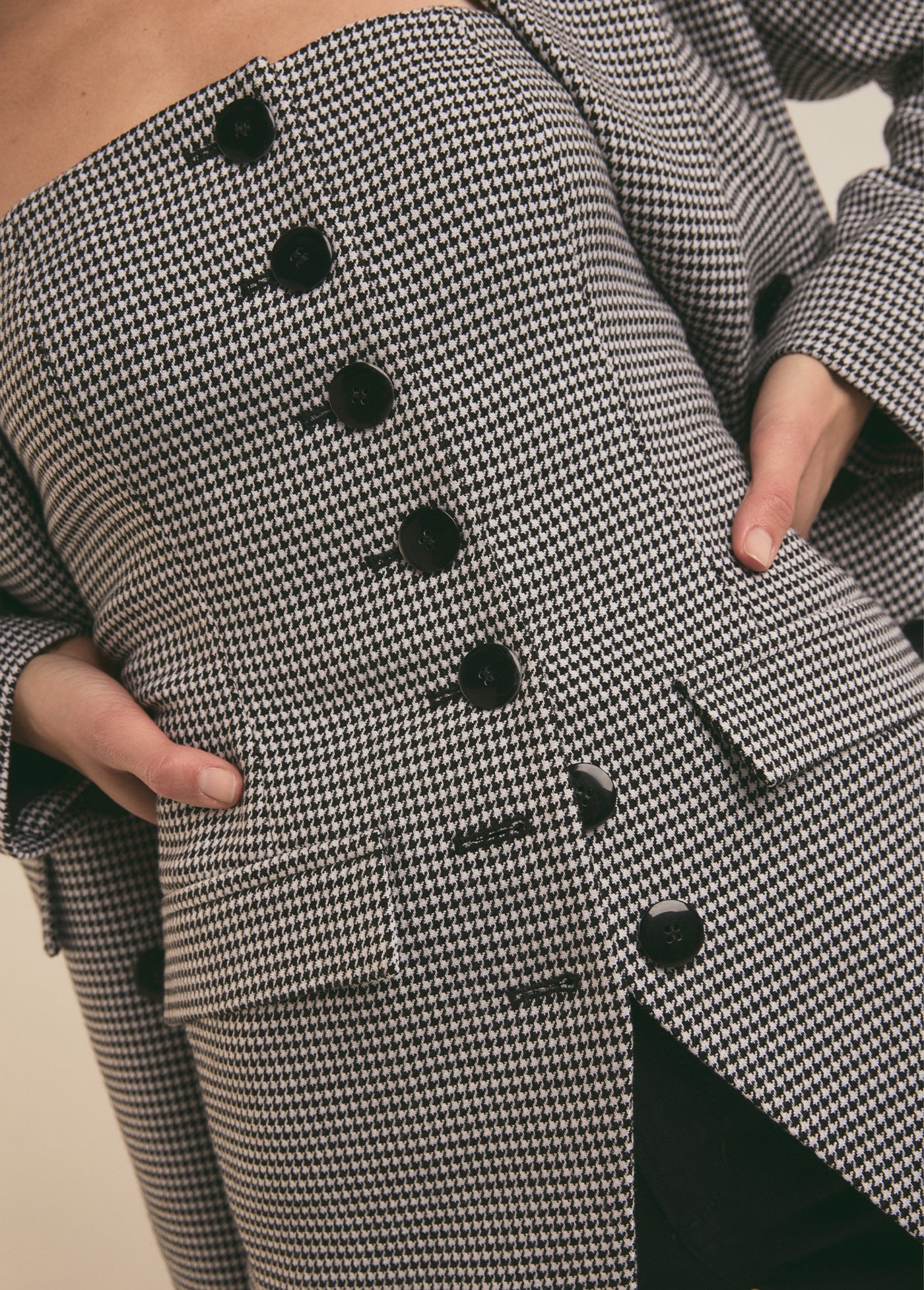 FINAL SALE - NO RETURN / EXCHANGEBorrowed from the boys, this bustier in a structured, jacquard-viscose blend Houndstooth has classic menswear styling--structured shape, front buttons and front flap pockets. The Phoebe Bustier is a classic and looks especially sharp paired with your favorite denim or styled as a set with The Low Favorite Pant.