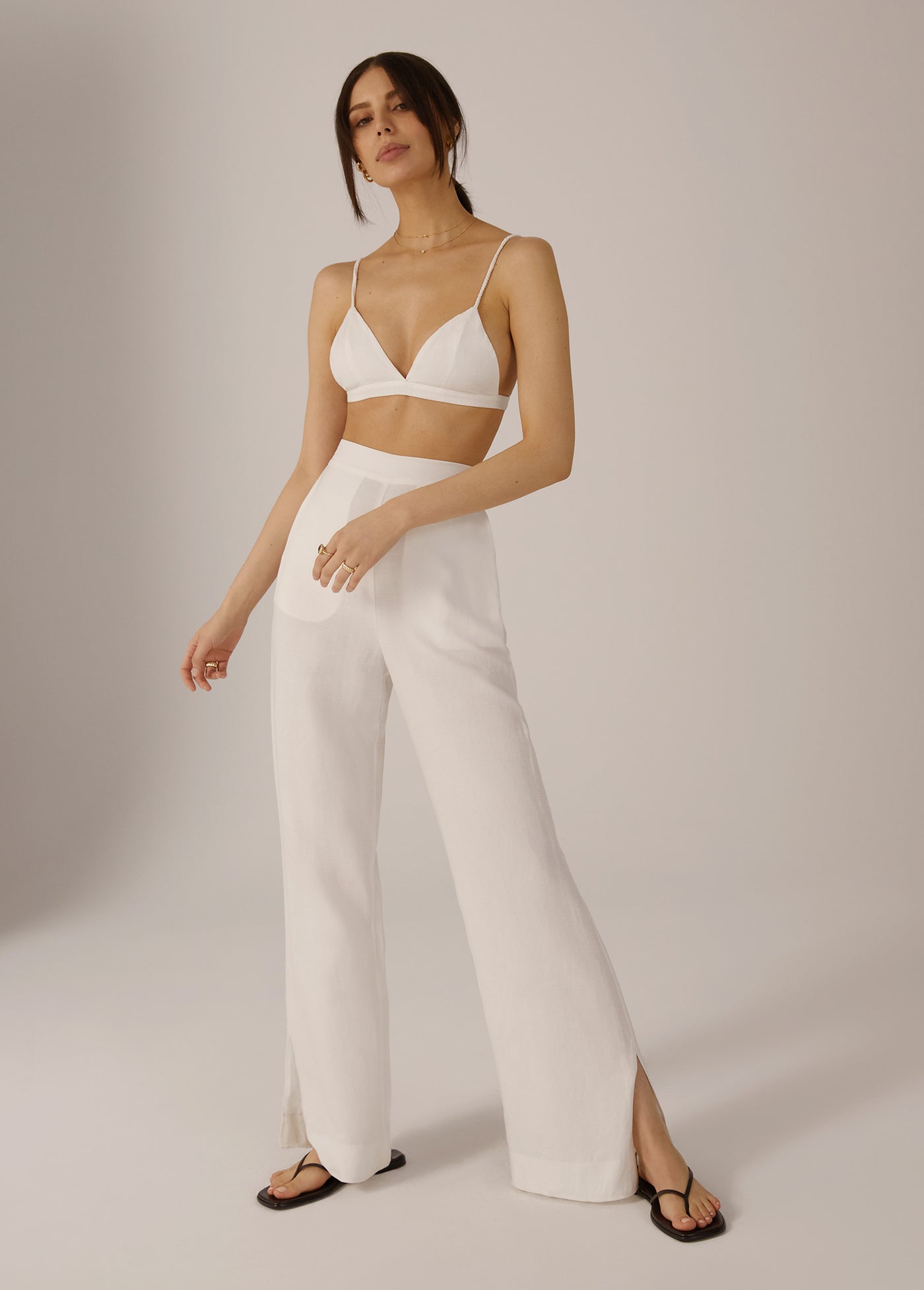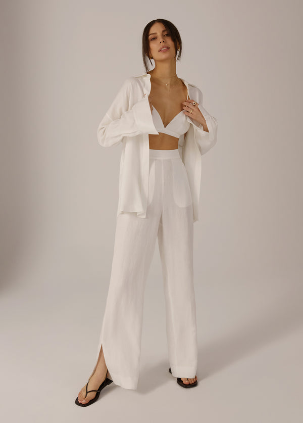 You're bound to love the Rebound Pant‚ flowy wide leg pant with a split side hem. The pants fit high on the waist with a comfortable elasticized back waistband and are cast in a dusty olive, modal blended fabric. Style it as a set with the Rebound Shirt and Bra for a breezy, effortless look.