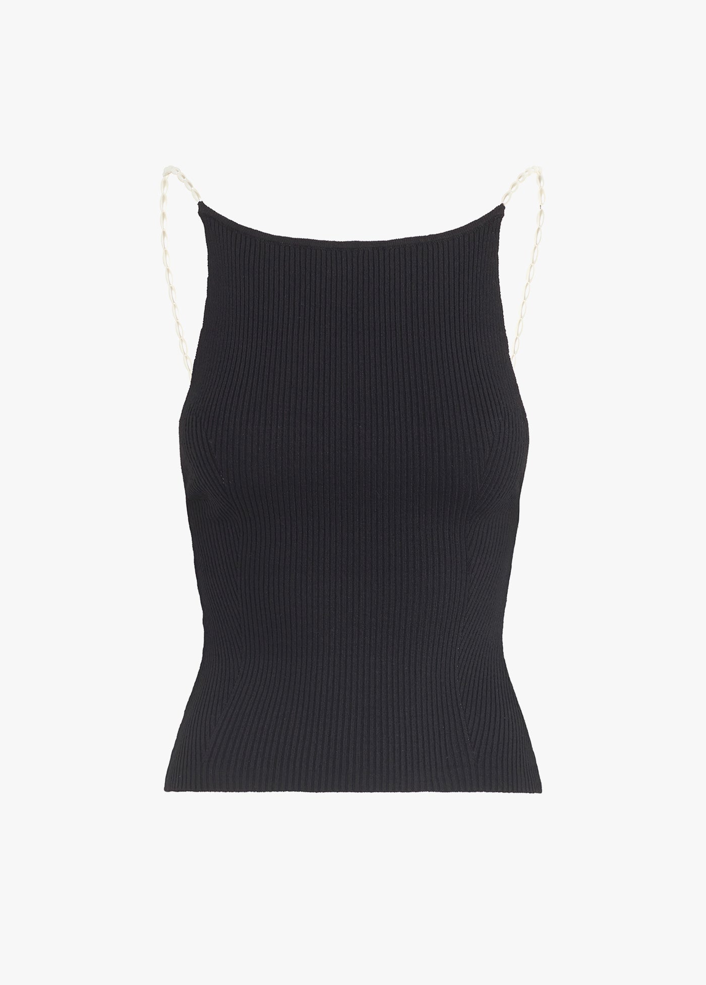 Show 'em the ropes. Our ribbed knit top has a slim fit--cut from a viscose blend for the perfect fit. It's finished with delicate pearl straps for eye-catching back detail. Sure, The Ropes Of Pearl Top looks great when dressed up but it also dresses up your most worn-in jeans.