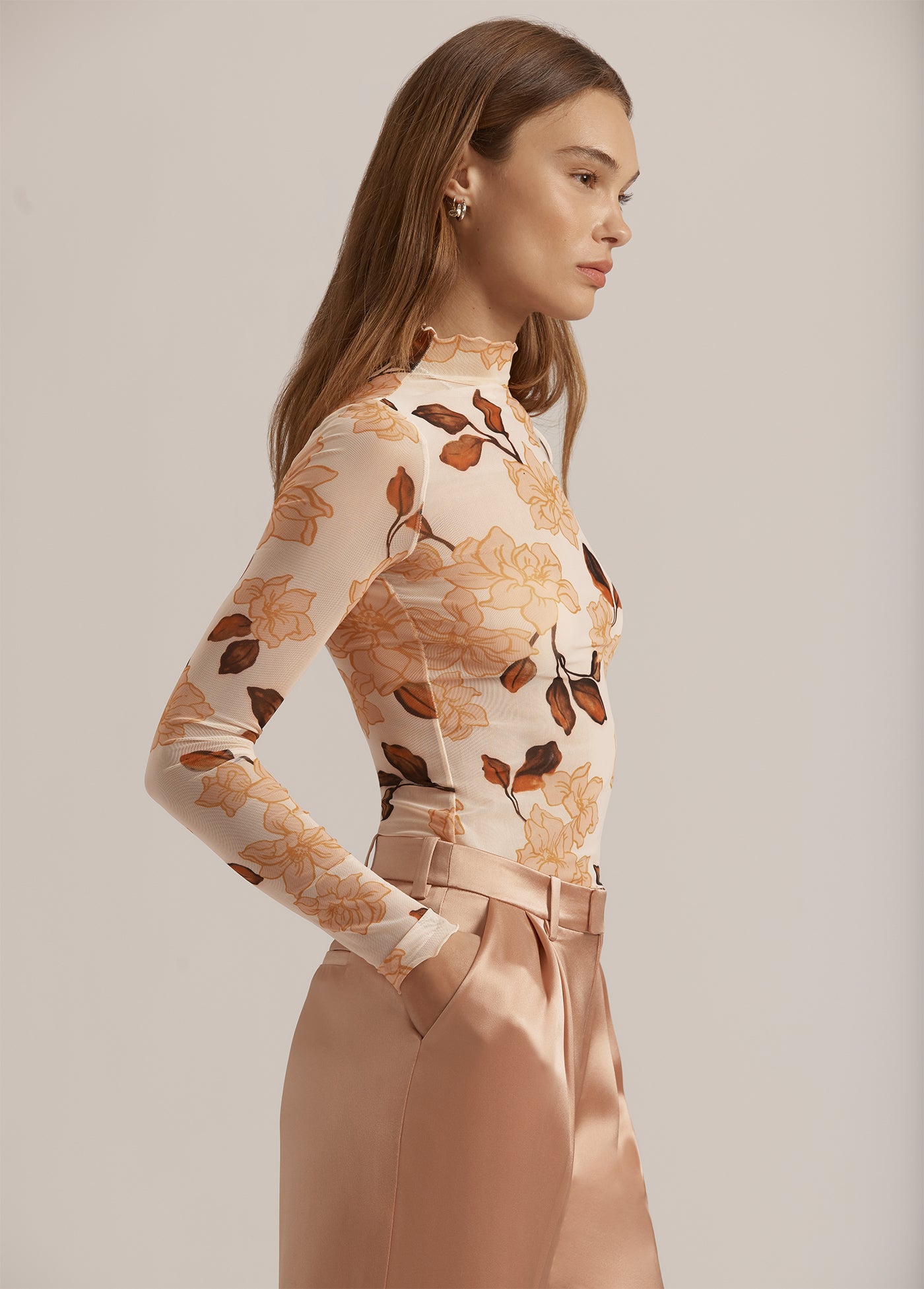 Floral, fitted and a new favorite. The Sheer Fantasy Top is cut from a delicate Bare Roses print in a close-fitting style with a mock neck and full lining. Pair it with The Josie Skirt for a head-to-toe look.