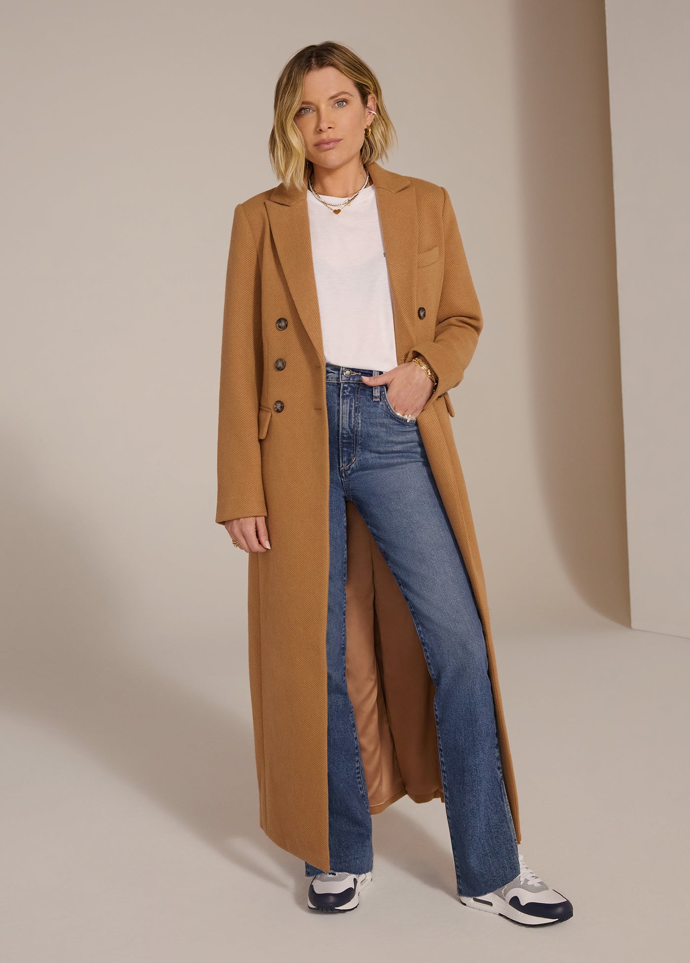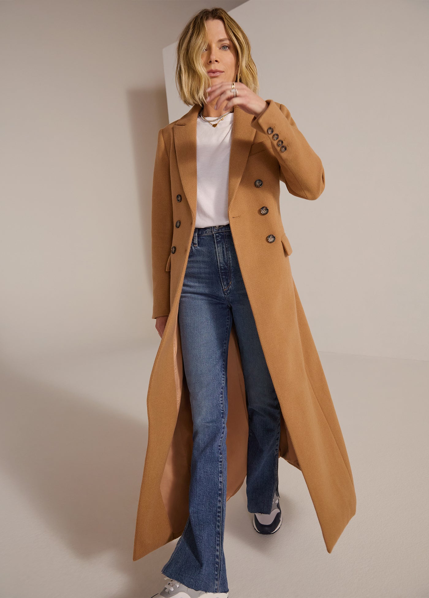 Tailored for winter, the double-breasted Simon Coat is both pretty and practical. The ankle-sweeping style has a slimmer fit cut proportionally for petites. It's crafted from a warm, brushed jacquard twill that's fully lined for added warmth. With front flap pockets and marble buttons, this classic camel coat may make winter your favorite season of style.