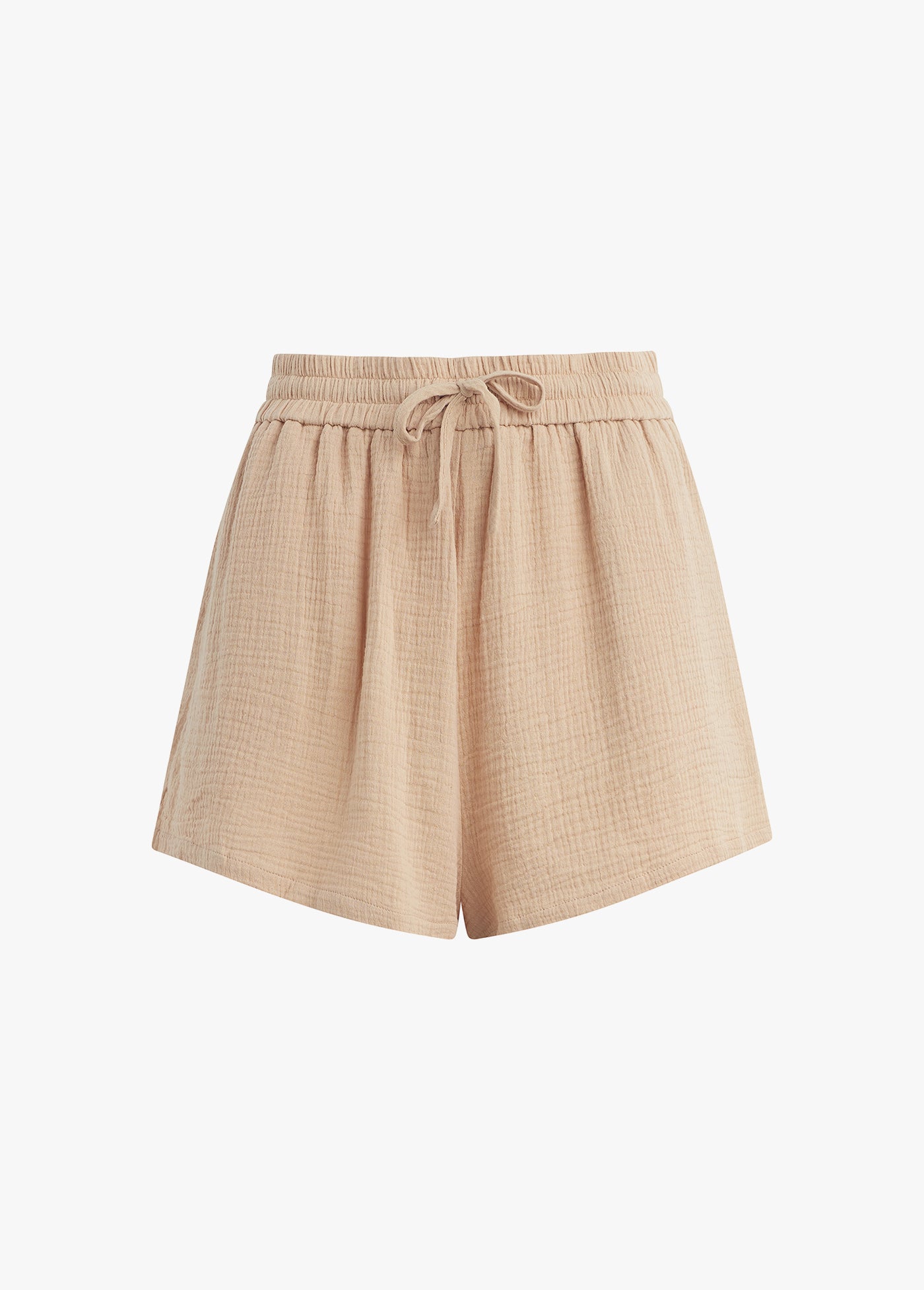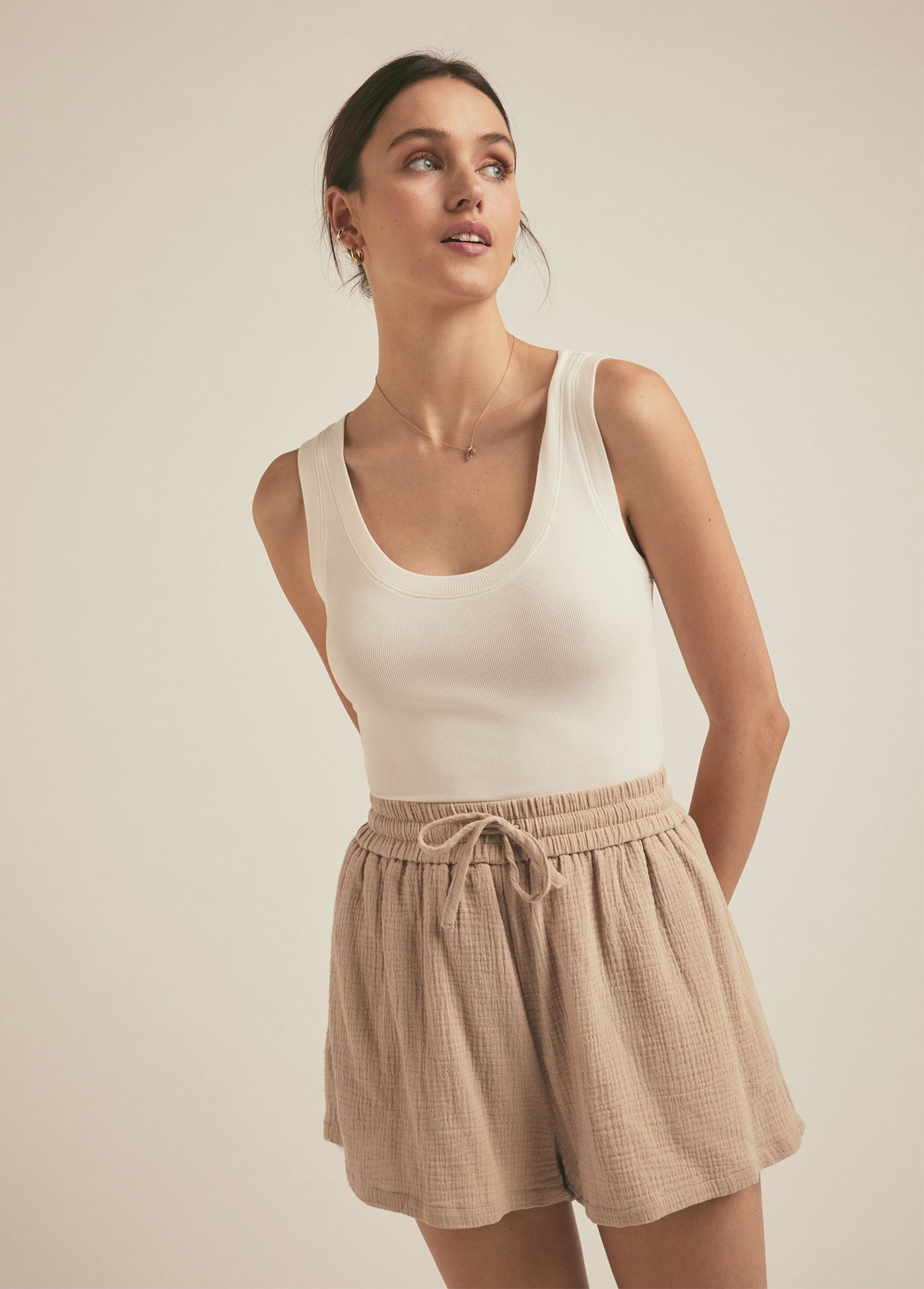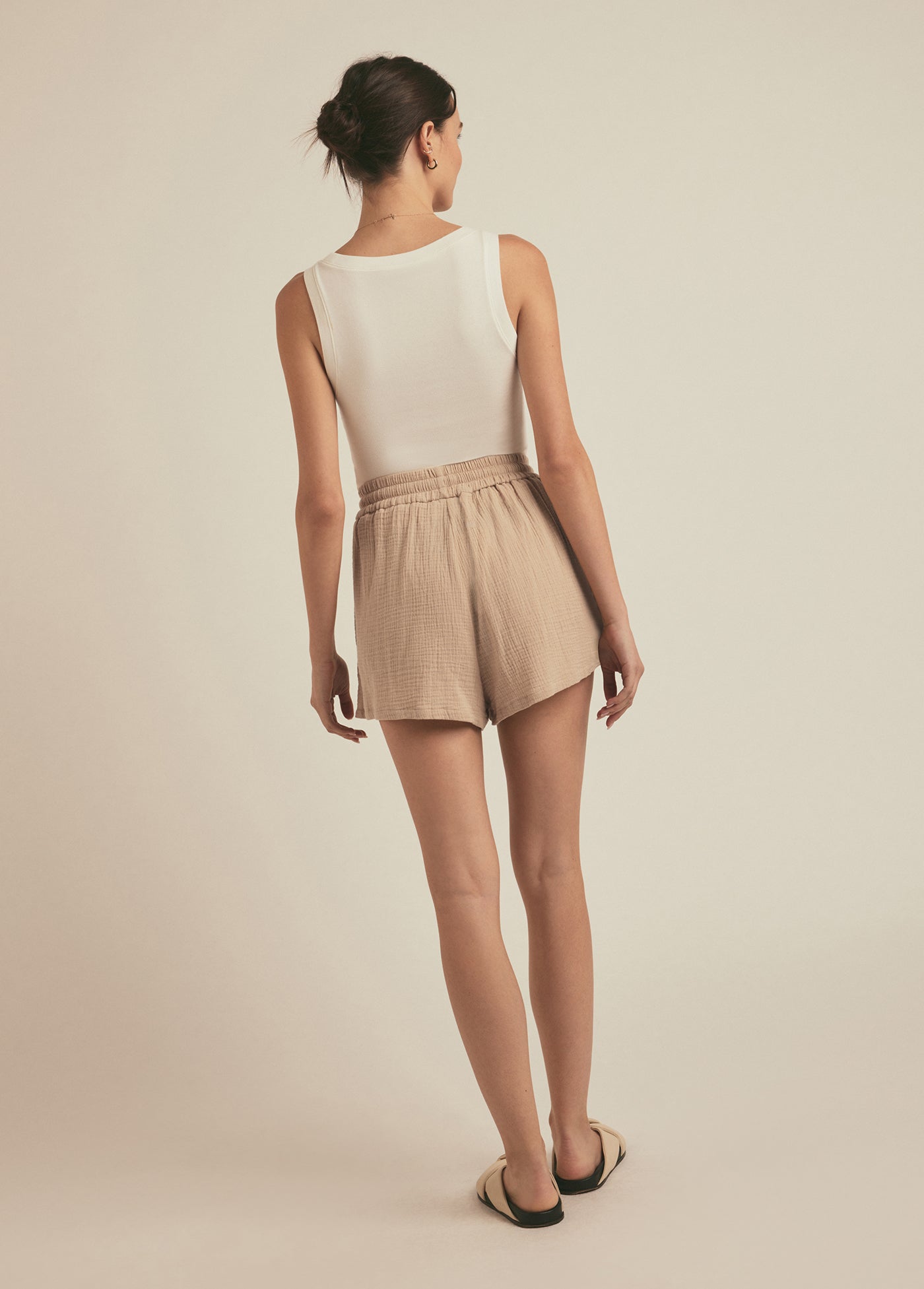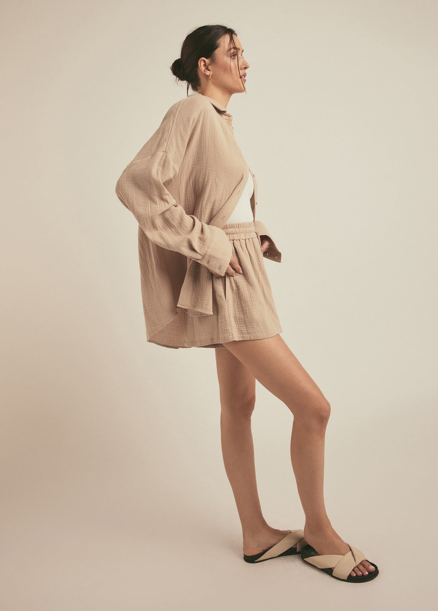Slip on The Slip It On Short for breezy styling on sunny days. The elastic drawstring band hits high on the waist with a wide leg (plus side pockets!) for a relaxed fit. Since the shorts are cut from a lightweight, double gauze fabric that's made from soft, breathable cotton, they are sure to be your next warm weather favorite. Pair with The Ex-Boyfriend Shirt in Beige for an airy summer set.