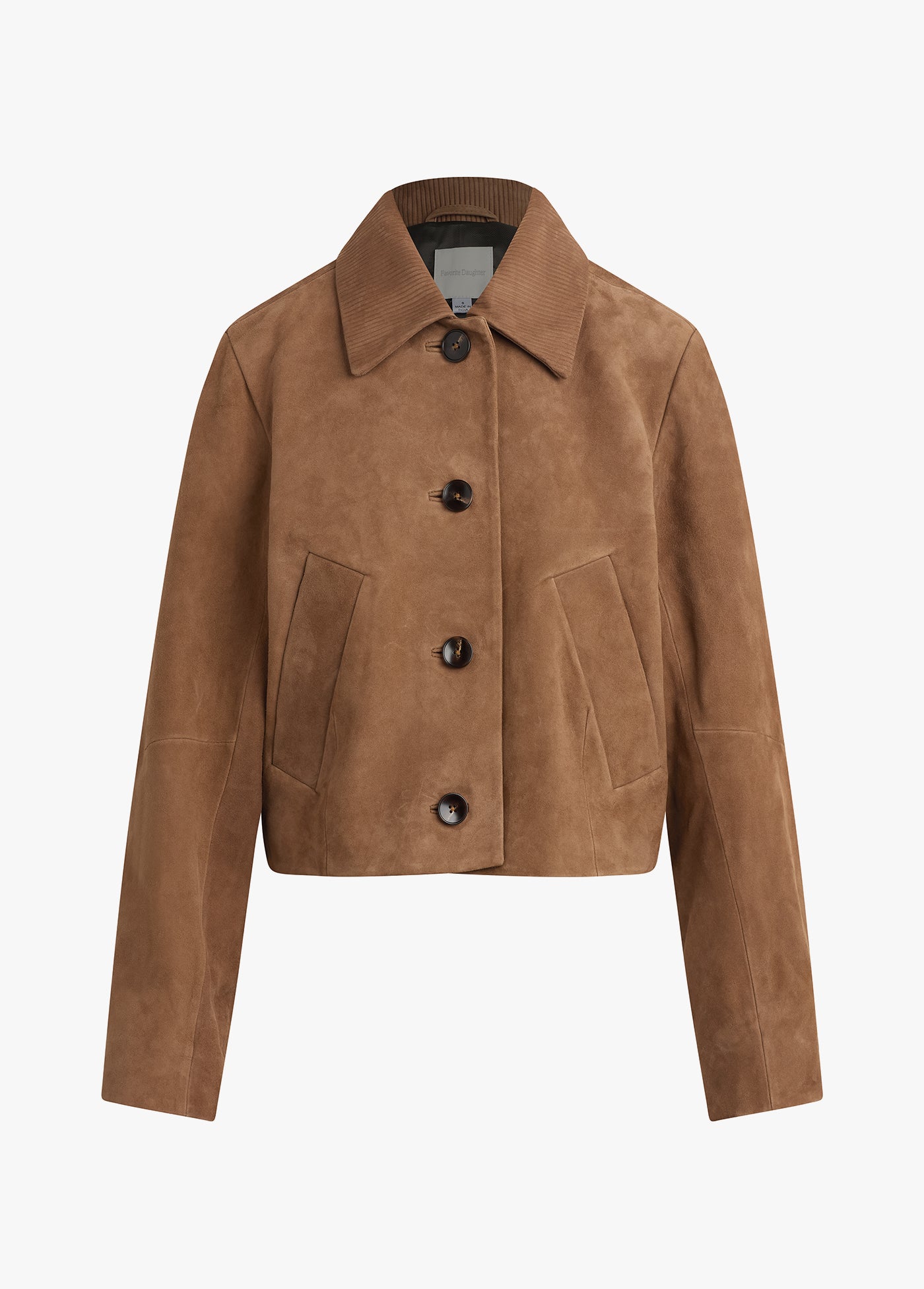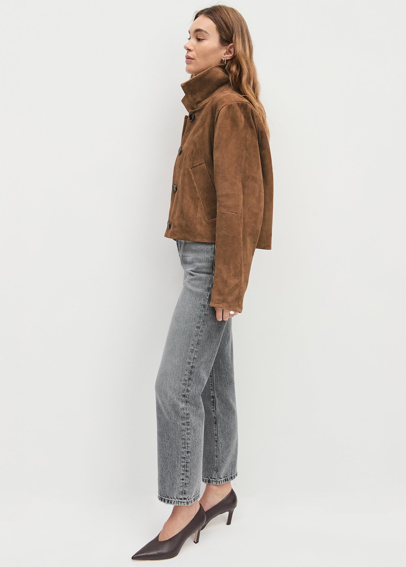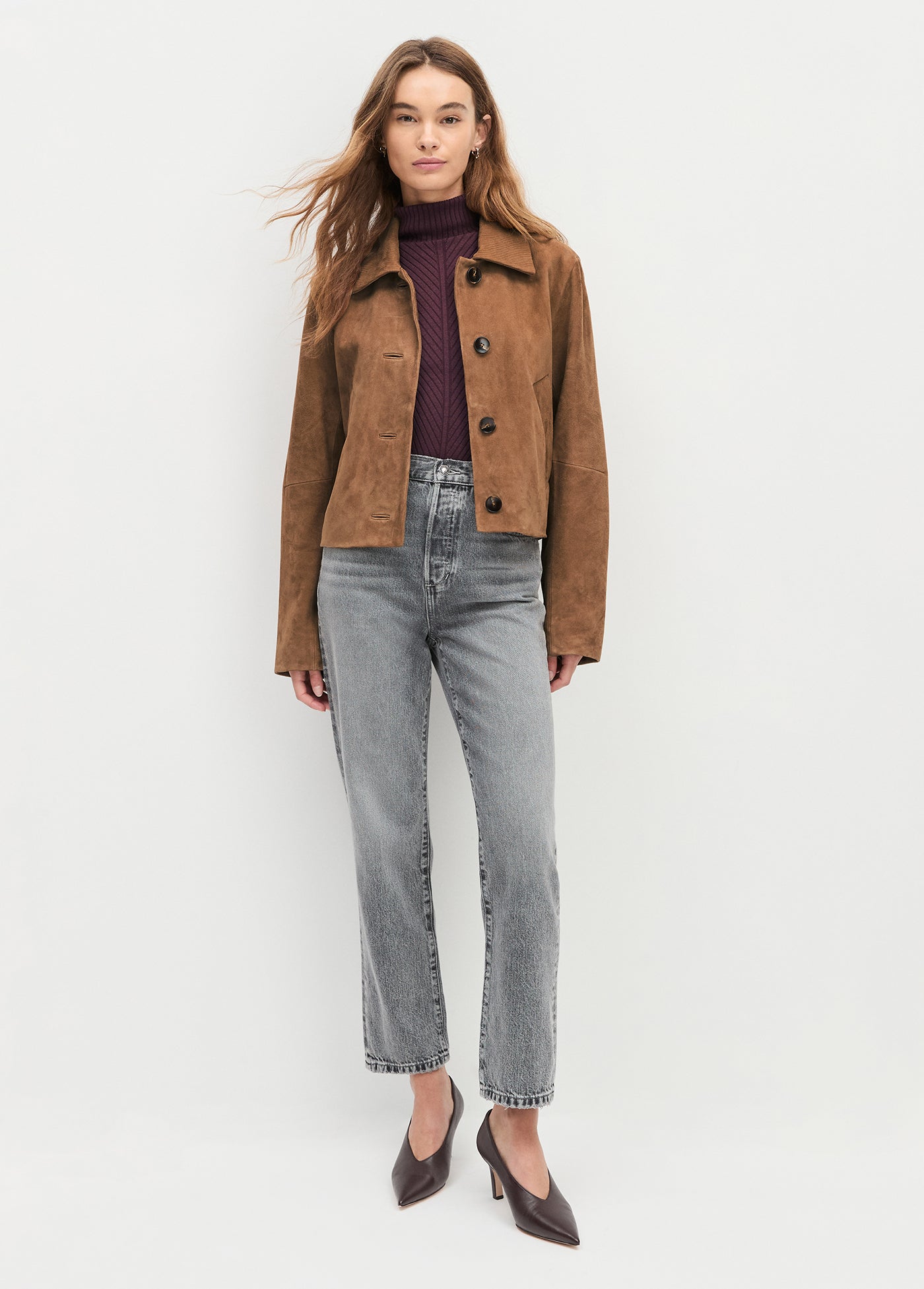 Hometown charm. Downtown style. Cut from 100% lamb suede, this collared jacket has a boxy fit and 20.75” length with front welt pockets and button closure. Effortlessly wearable and forever a favorite.