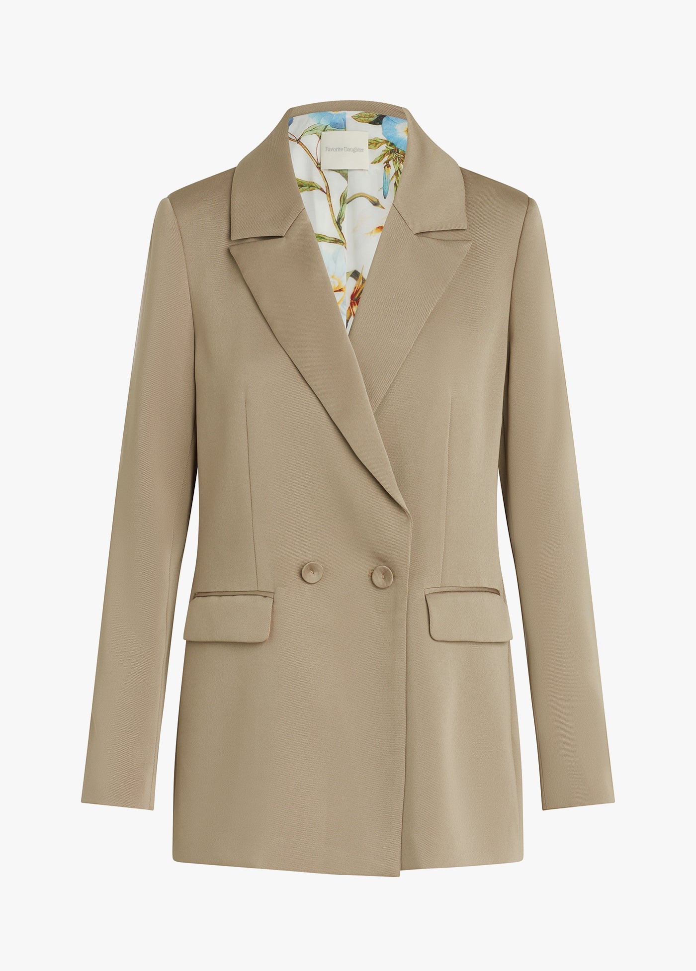 Everything's better in a blazer. The Suits You Blazer is double-breasted with notched lapels and a deep V-neck for a timeless look (that's also on trend). It's got an easy, straight fit cut from a soft delicate suiting drappy twill with printed botanical floral lining. We especially love the beige hue for an everyday neutral.