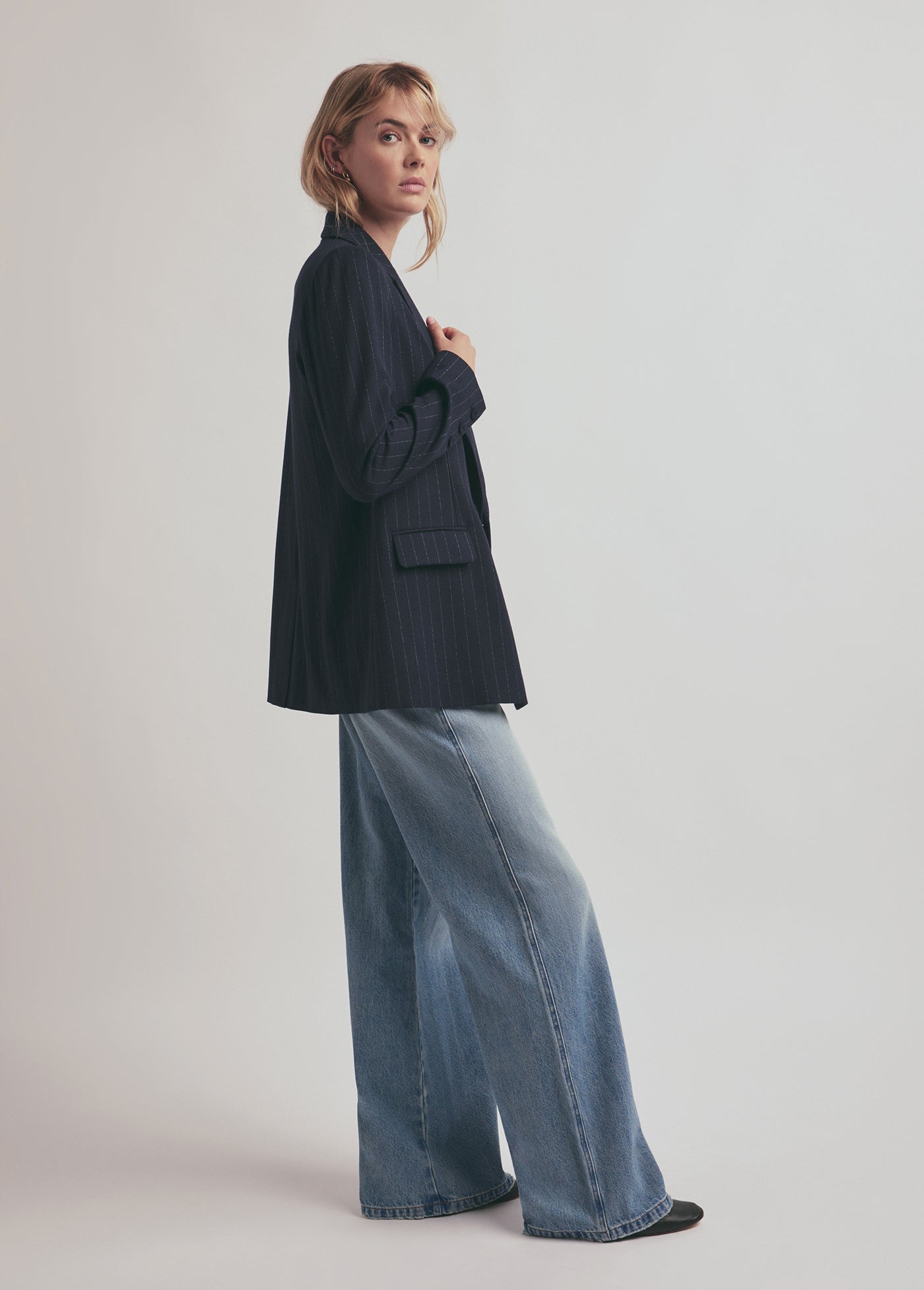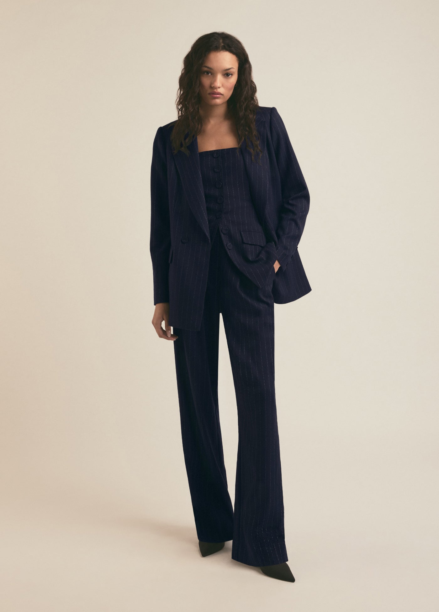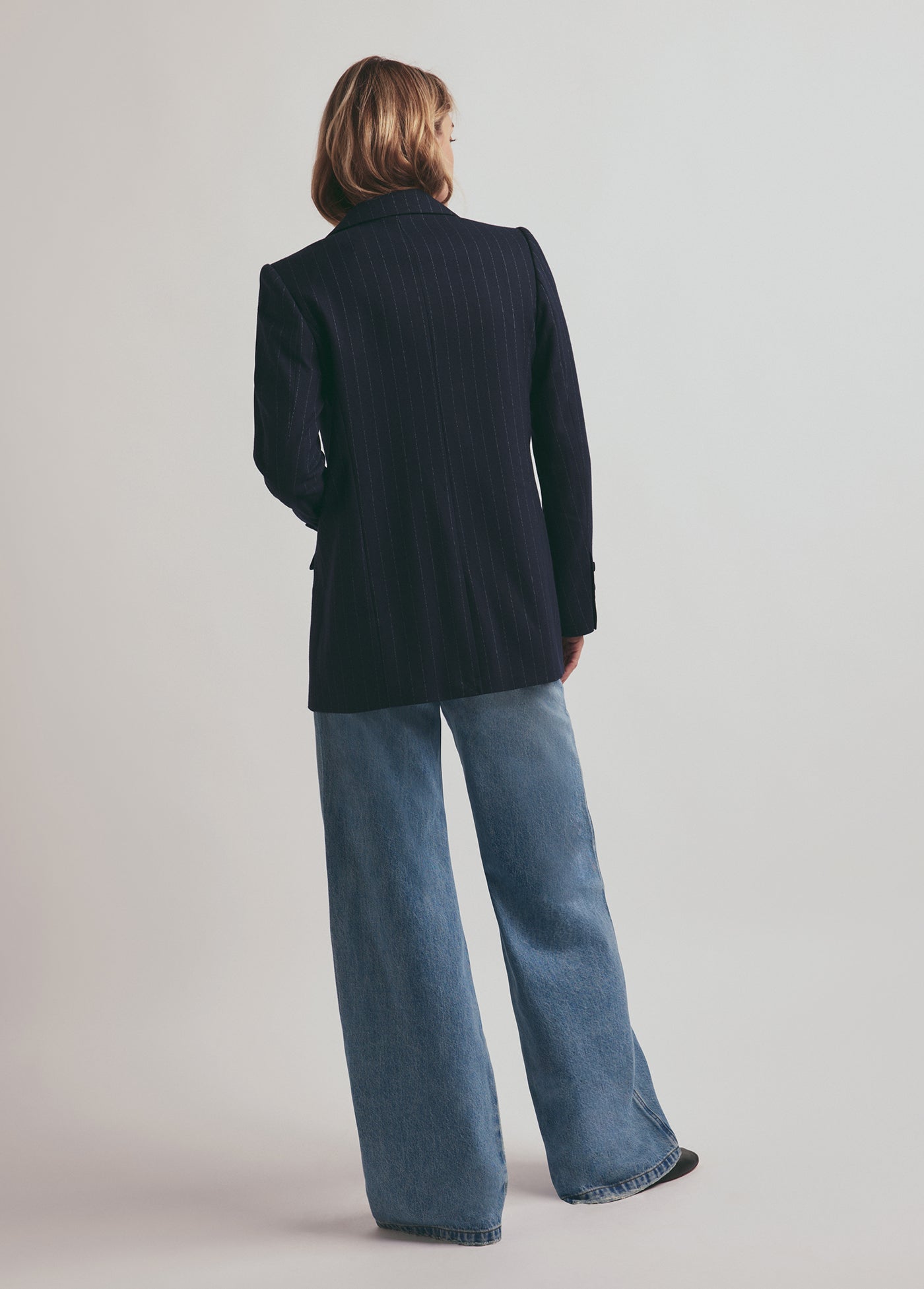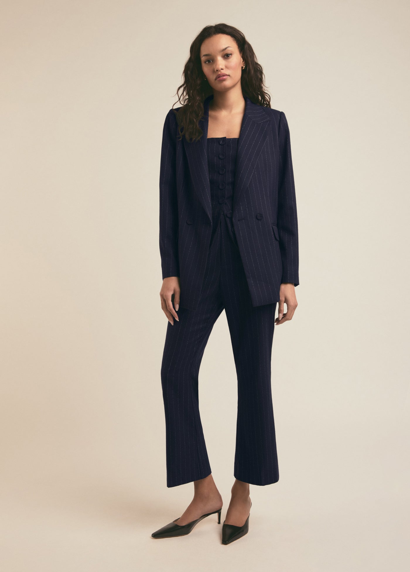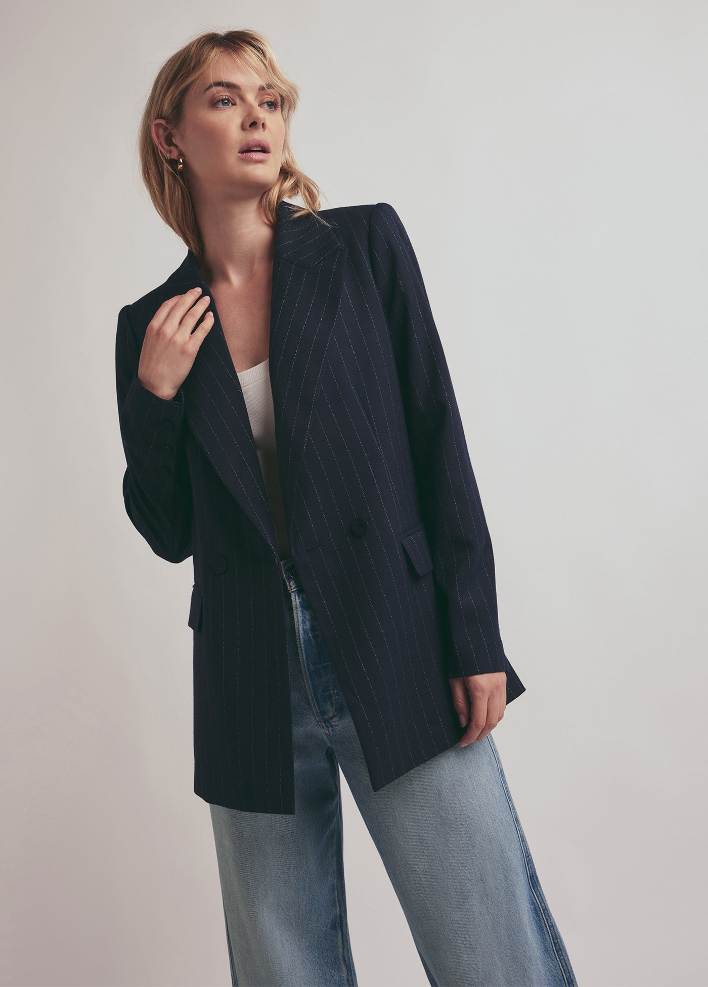 Everything's better in a blazer. The Suits You Blazer is double-breasted with notched lapels and a deep V-neck for a timeless look (that's also on trend). It's got an easy, straight fit cut from a classic navy pinstripe with stretch for tailored comfort. It will easily become your go-to, favorite look.