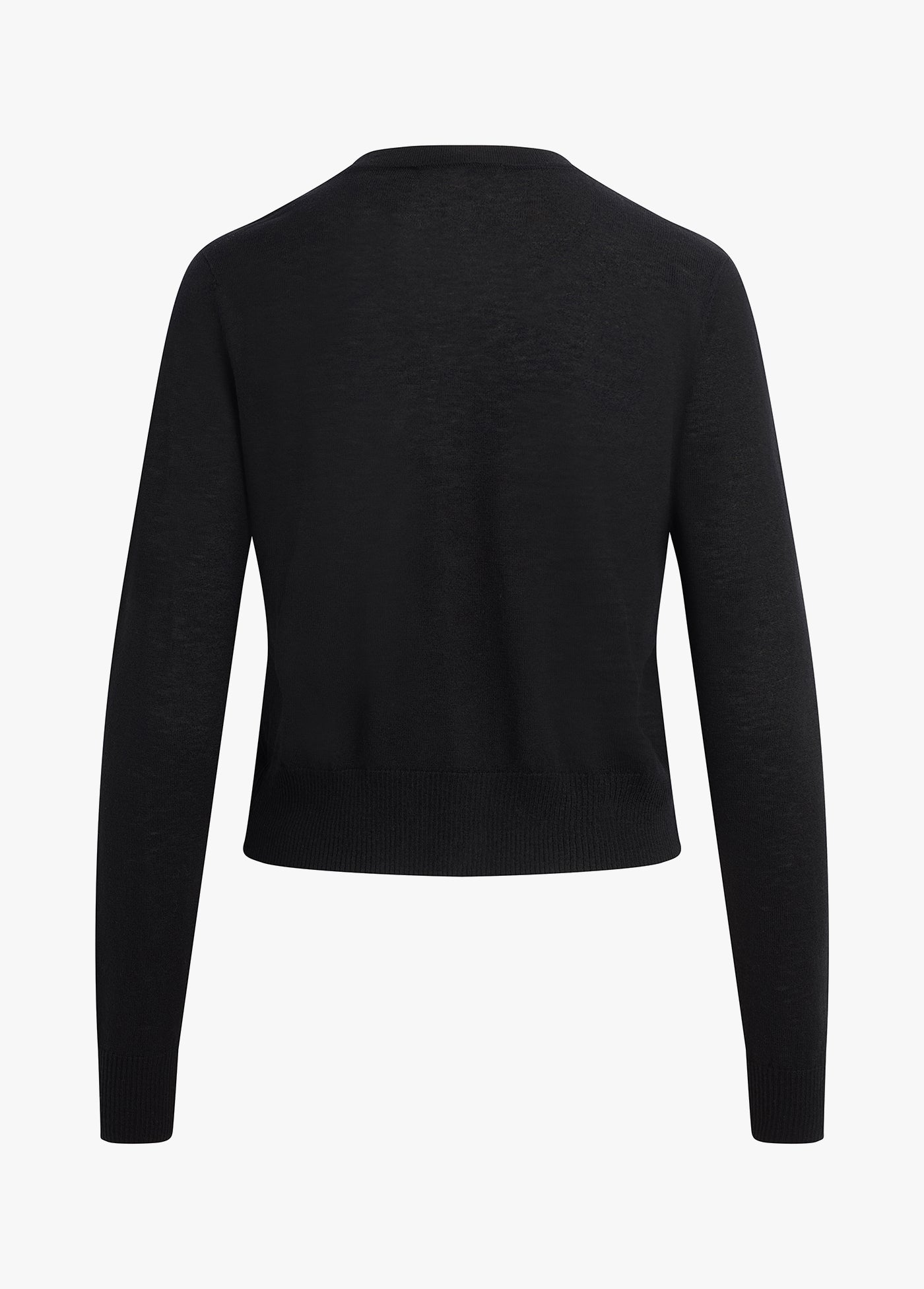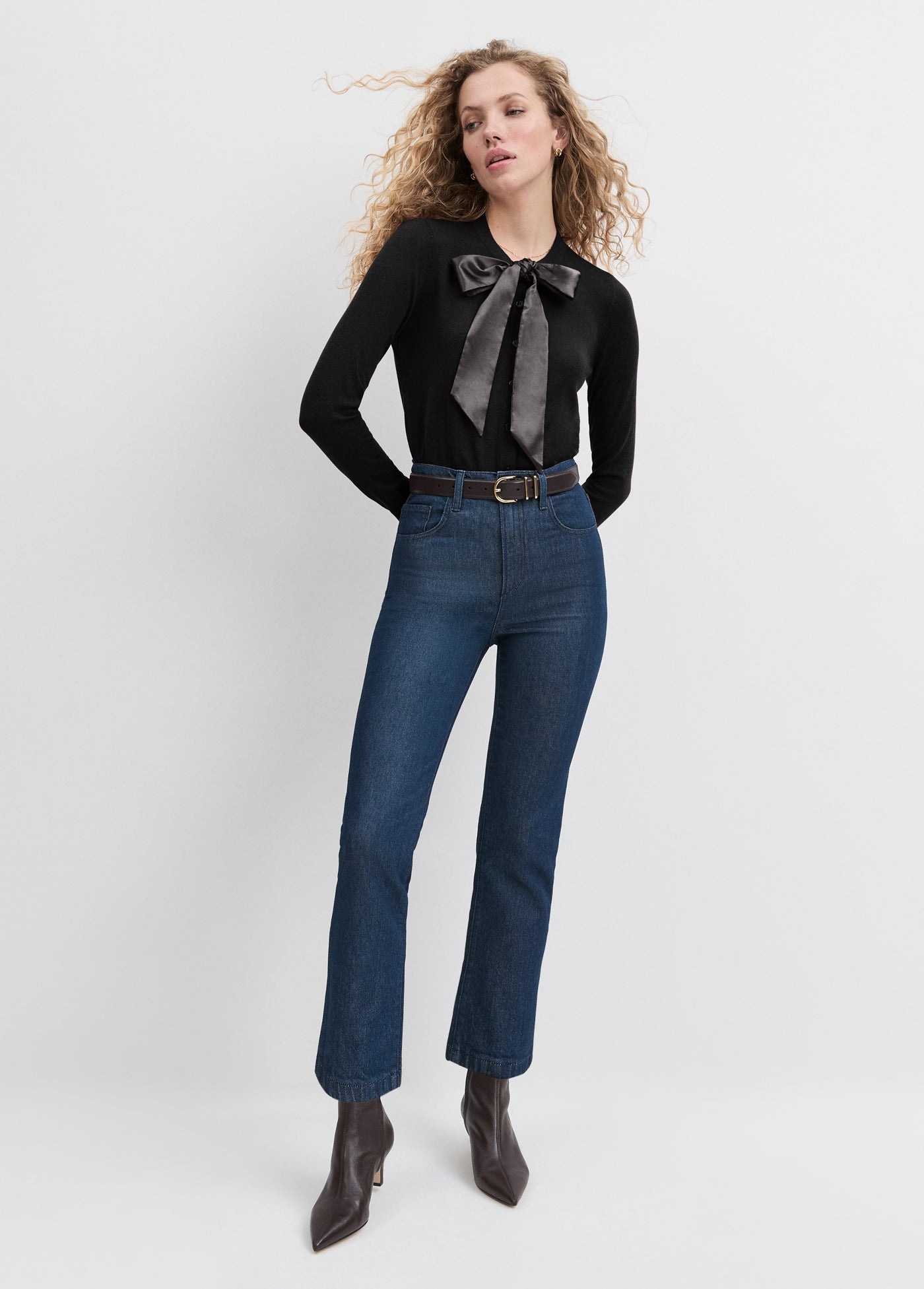 The Take A Bow Cardigan earns its applause. Our slim-fit cardi, cut from soft merino wool, is finished with satin buttons and a detachable satin bow that can be tied through the top button hole. Proof that classics can still steal the show.