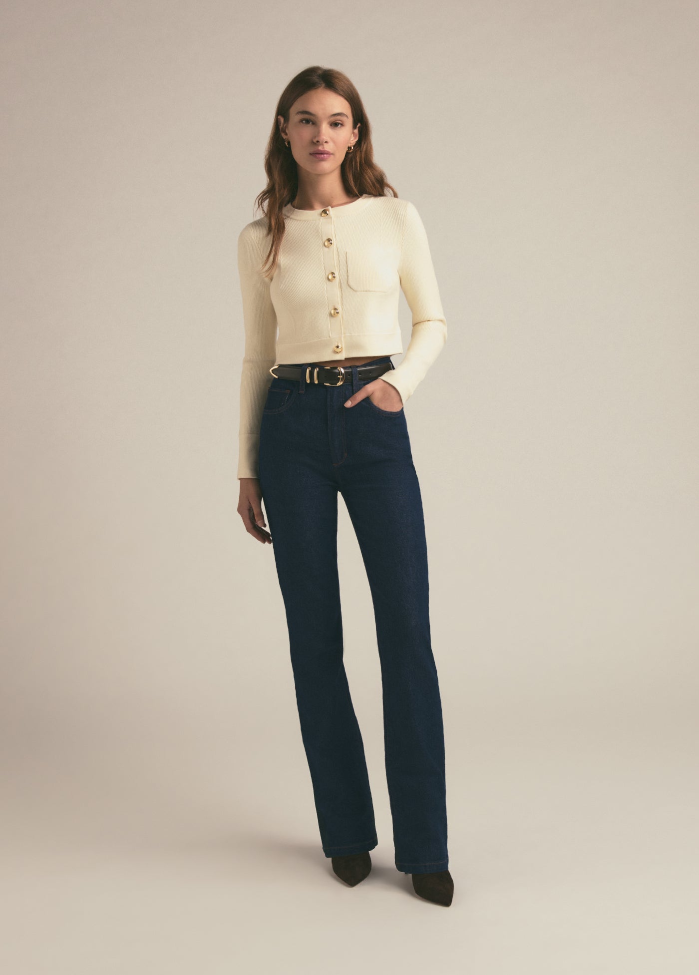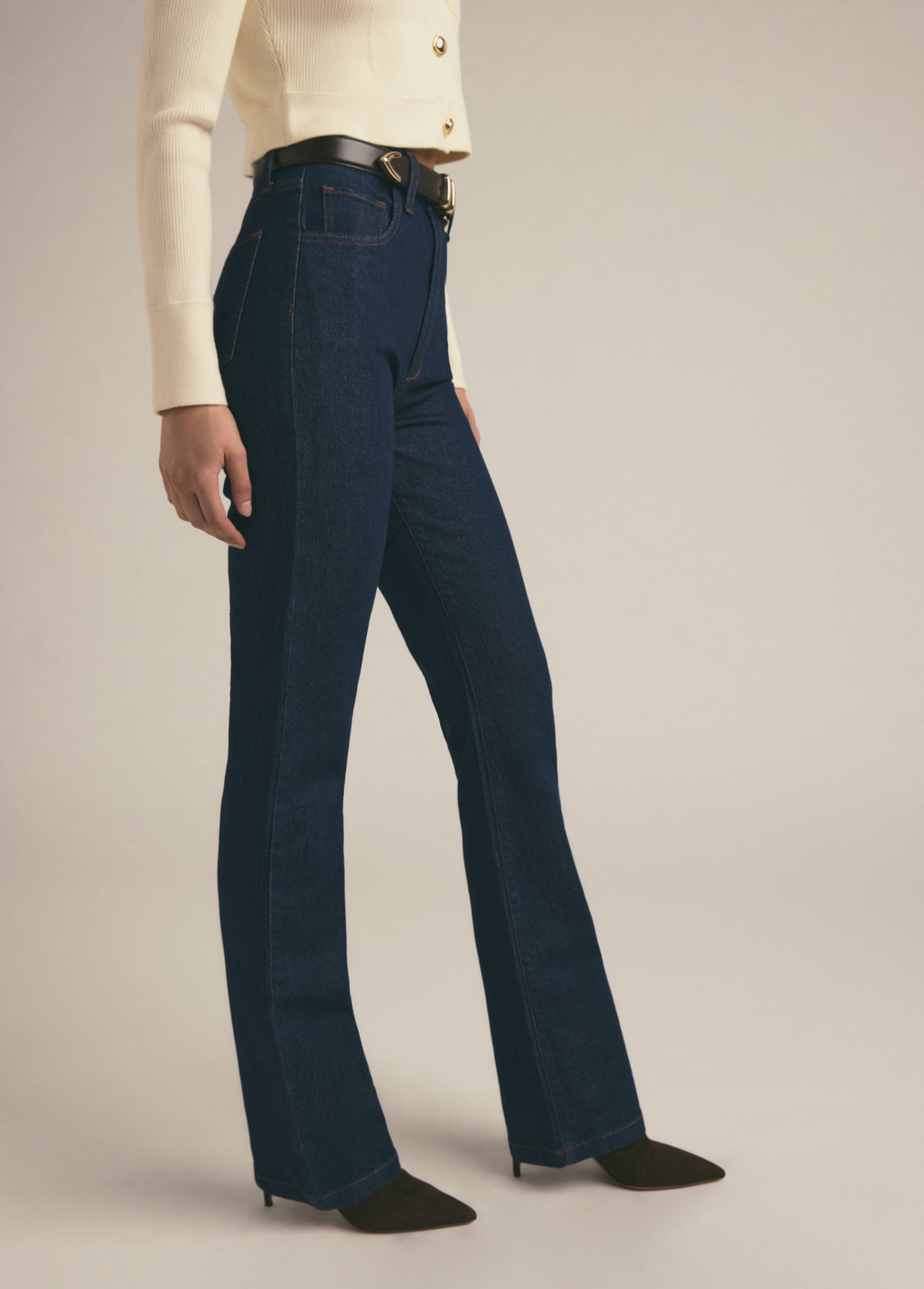 A high five for the super high rise 11.5" bootcut jeans. The retro-inspired style gives the Valentina an everyday look and the comfort stretch gives this denim a well-fitted silhouette. The rich darkness of the Pepper wash has a hint of stretch which means that it’s super comfortable and soft to the touch so it will hold its shape and structure. (Favorite Daughter embroidery on the back waistband, of course.)