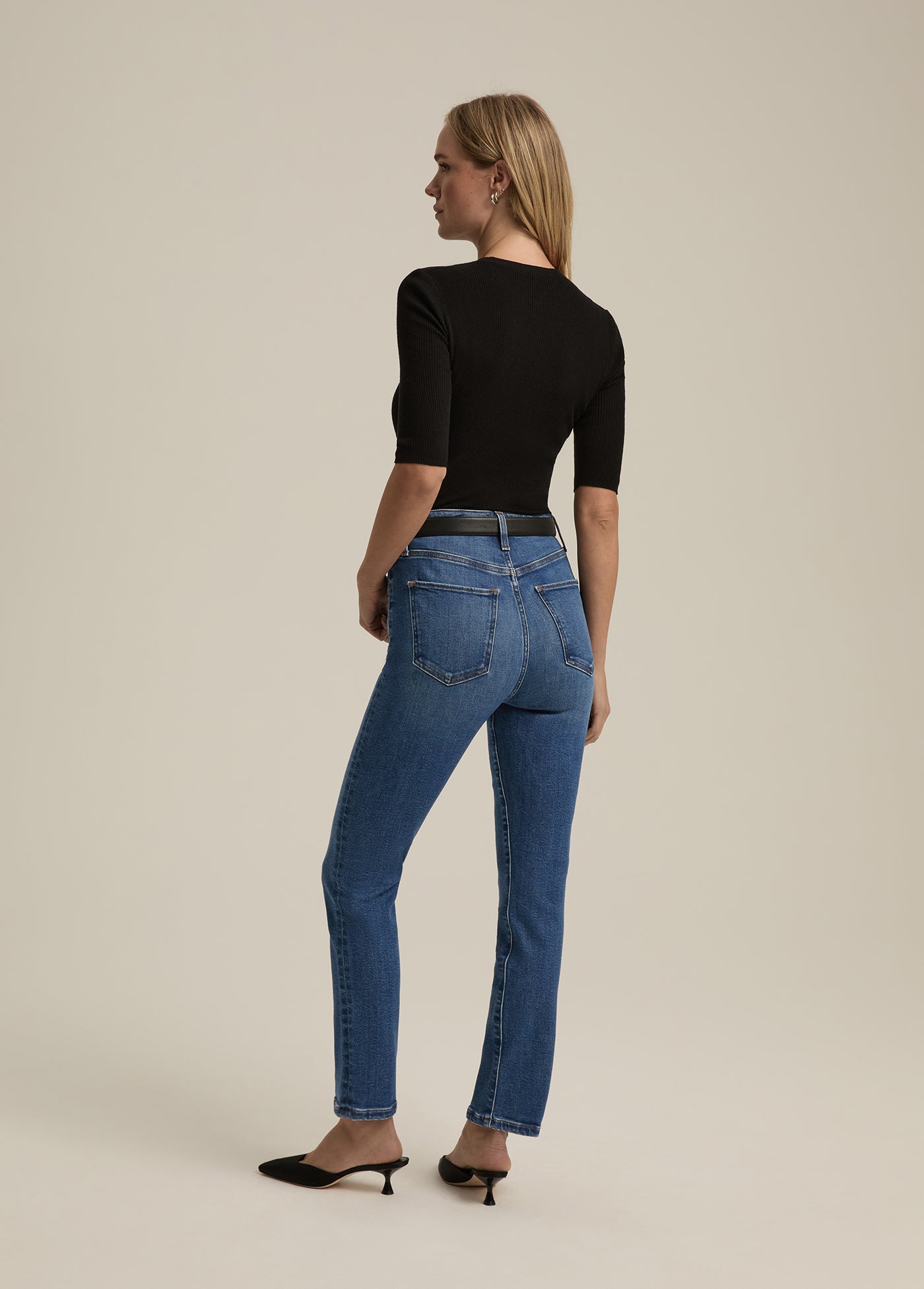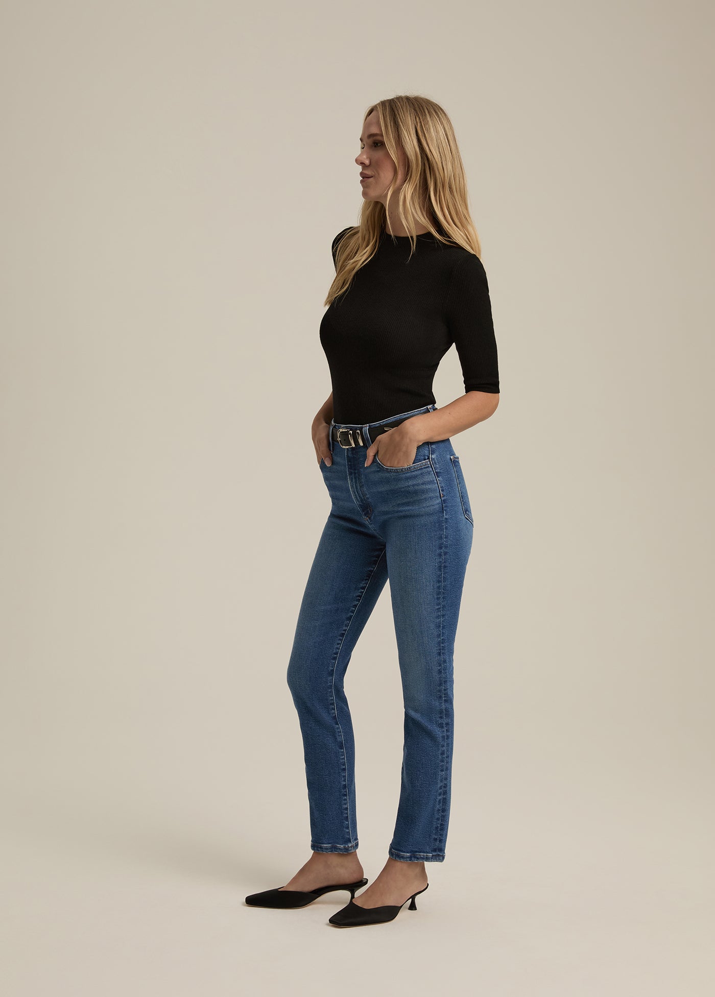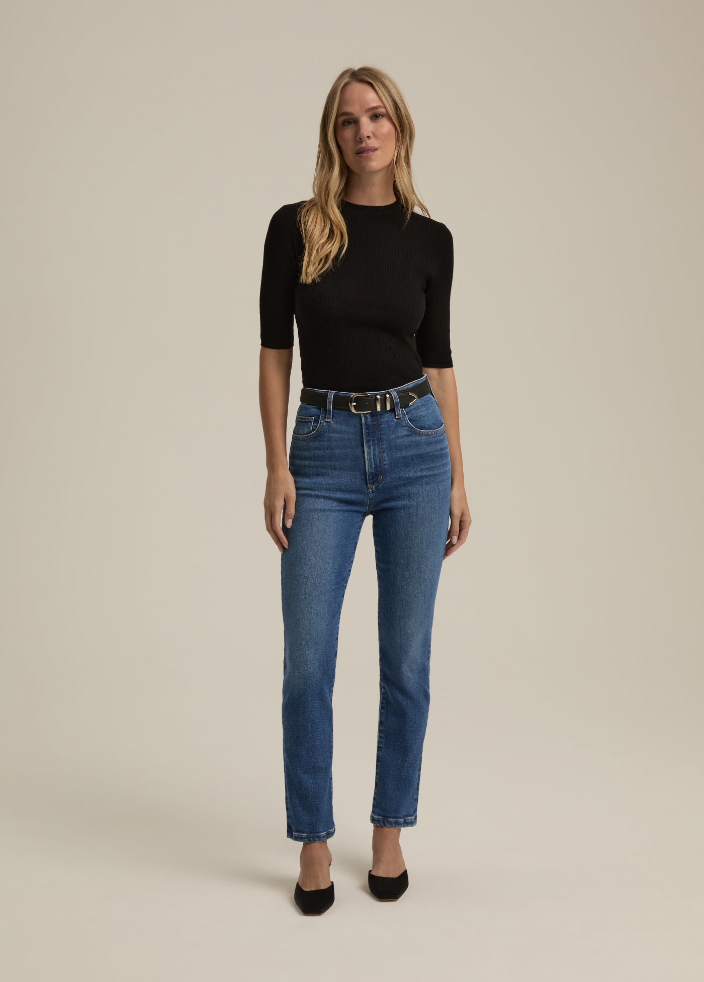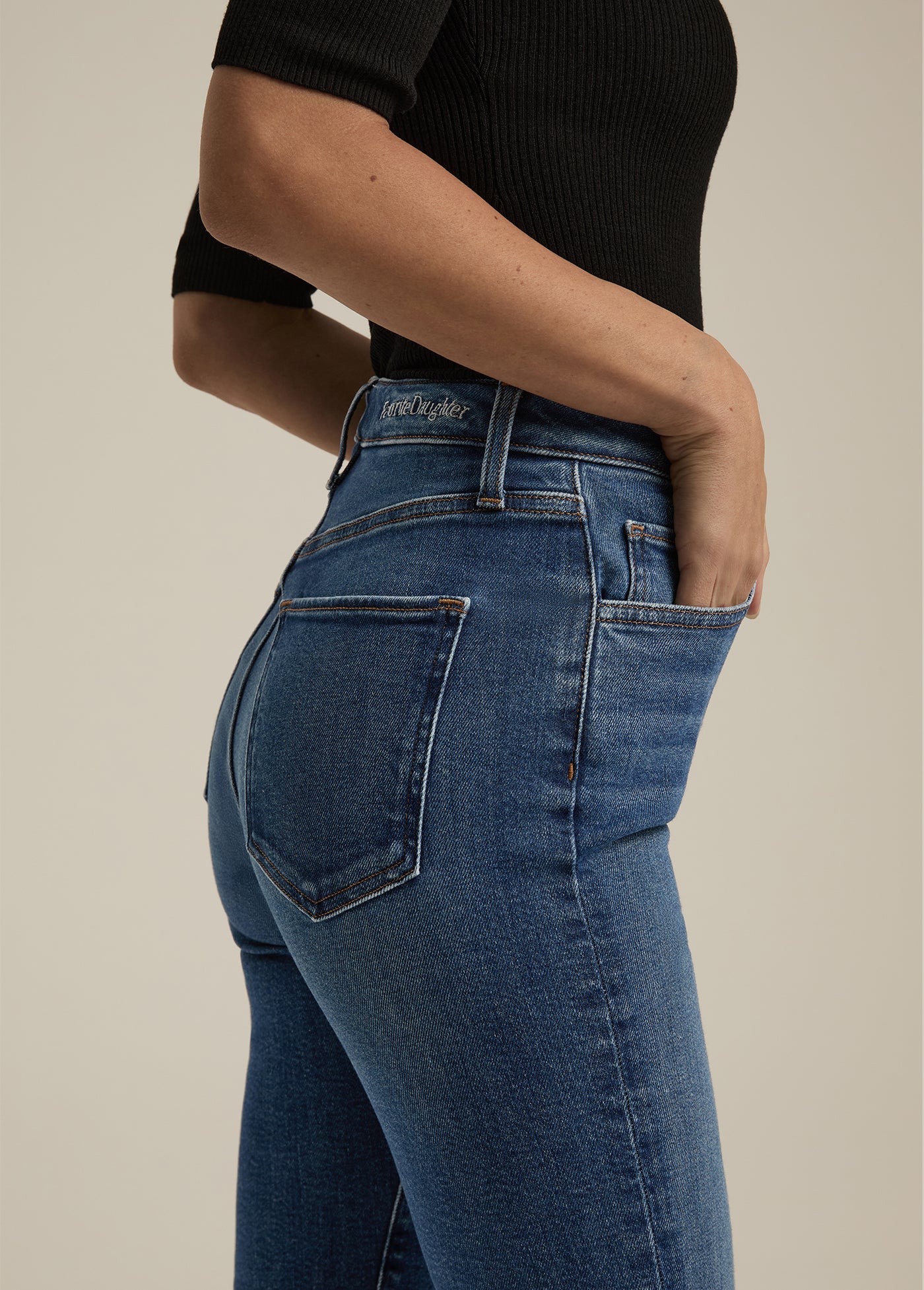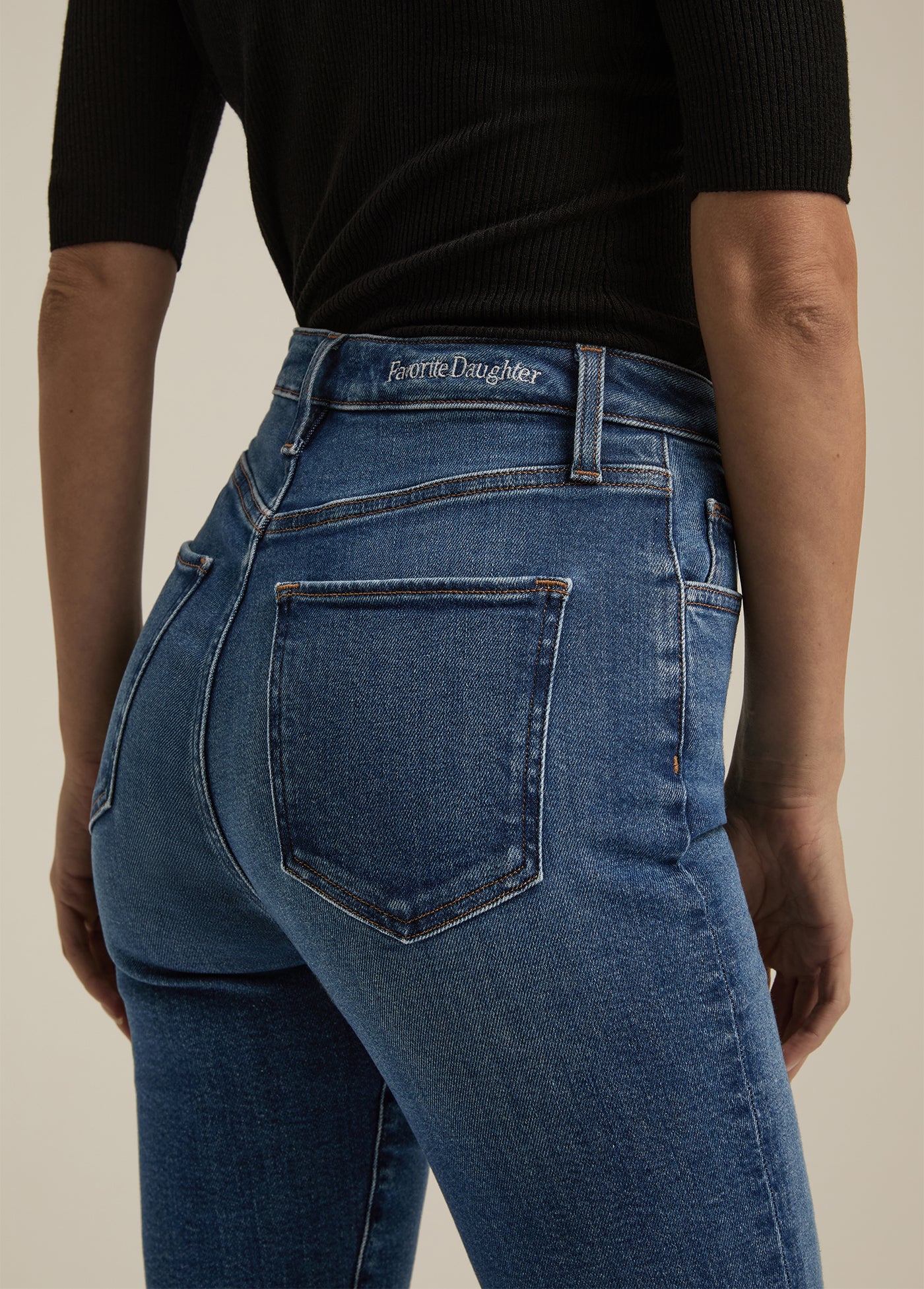 FINAL SALE - NO RETURN / EXCHANGEHigh rise, high style. The Valentina Jean features an ultra-flattering 11.5" rise and a cigarette fit with a 28" inseam. Crafted from heavyweight, high-stretch denim that forms to your body without feeling restrictive, these jeans combine comfort with a refined look. The medium-blue Madison wash, with subtle whiskering and a clean hem, makes these jeans an instant classic. And, of course, they’re finished with our signature Favorite Daughter embroidery on the back waistband. For a snugger fit, we suggest sizing down.