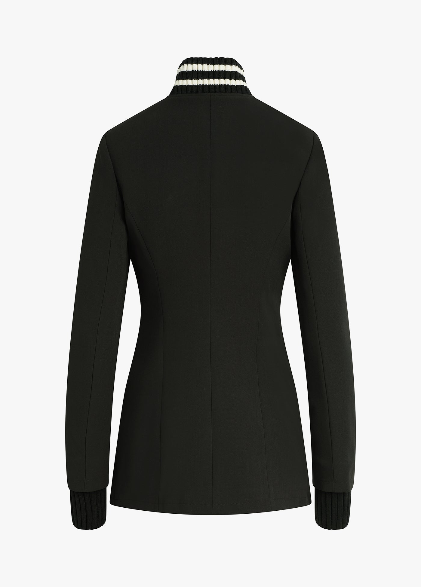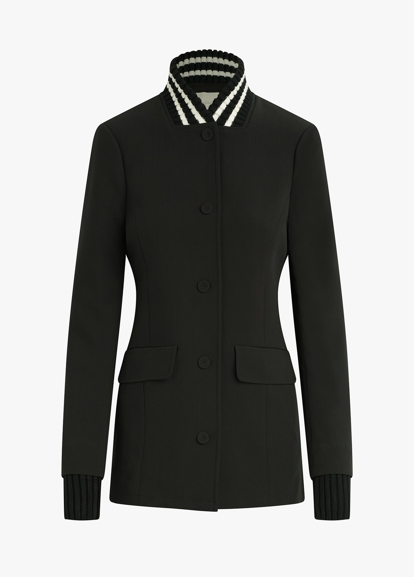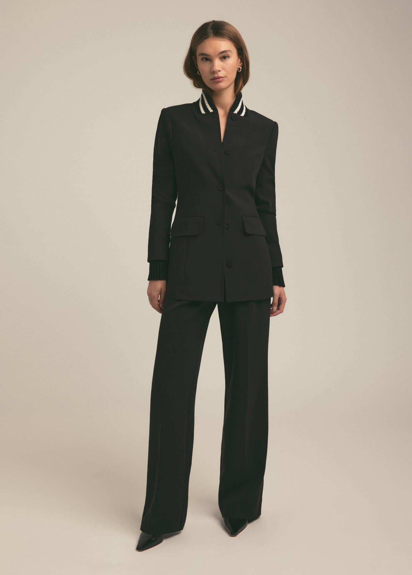 The Varsity Blazer will be your wardrobe's MVP. It's cut from a fully-lined, structured suiting fabric and has all the winning details--a rib-knit viscose-blend striped collar, solid rib cuffs, front flap pockets and self-covered buttons. The slim silhouette looks especially chic when paired with the coordinating Varsity Pant.