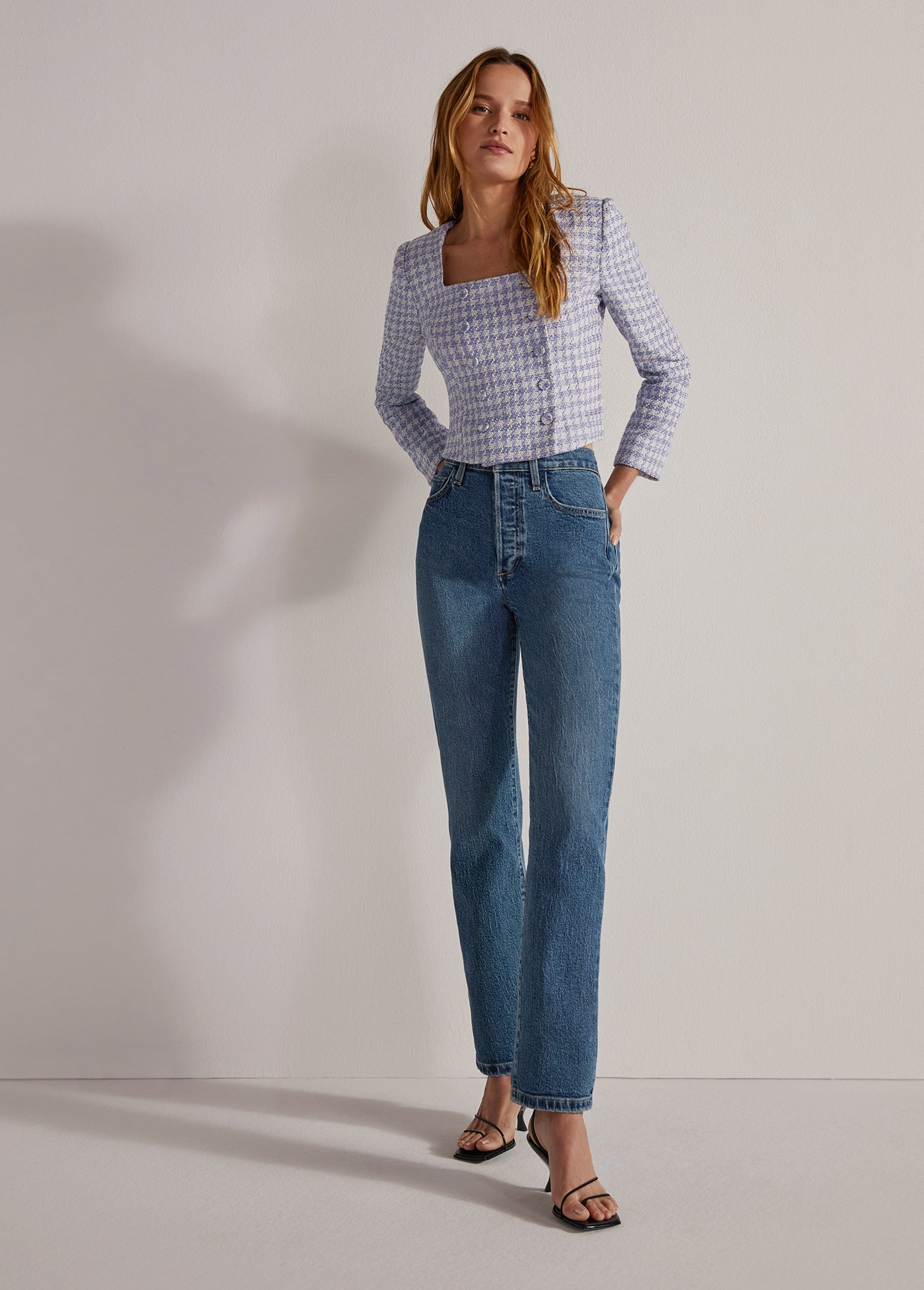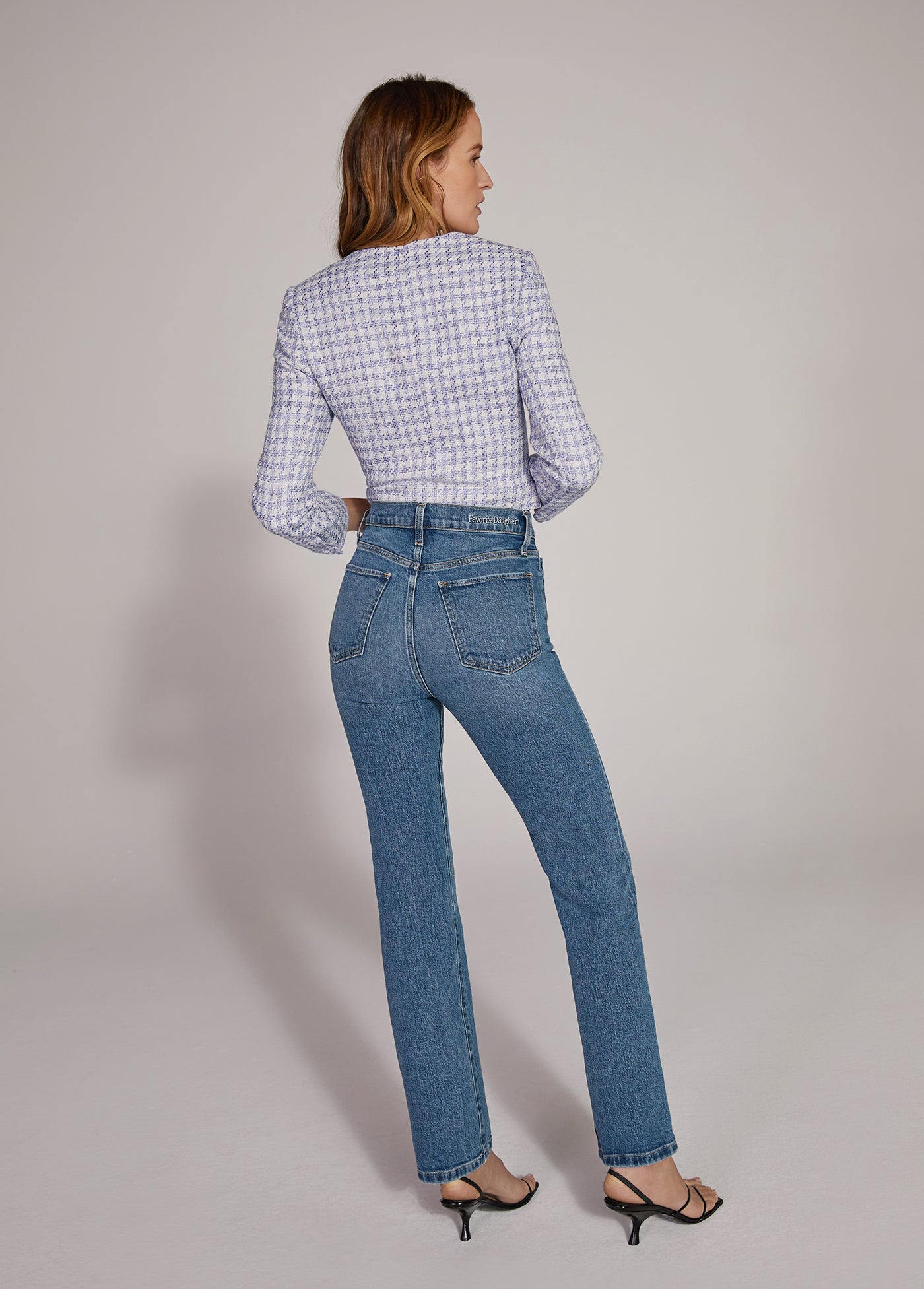 Somewhere between relaxed and skinny lives the straight leg. The Vivi is designed for everyday wear in Chelsea, an everyday wash. It's a classic button fly high rise, straight leg jean that's fitted at the waist and hips.