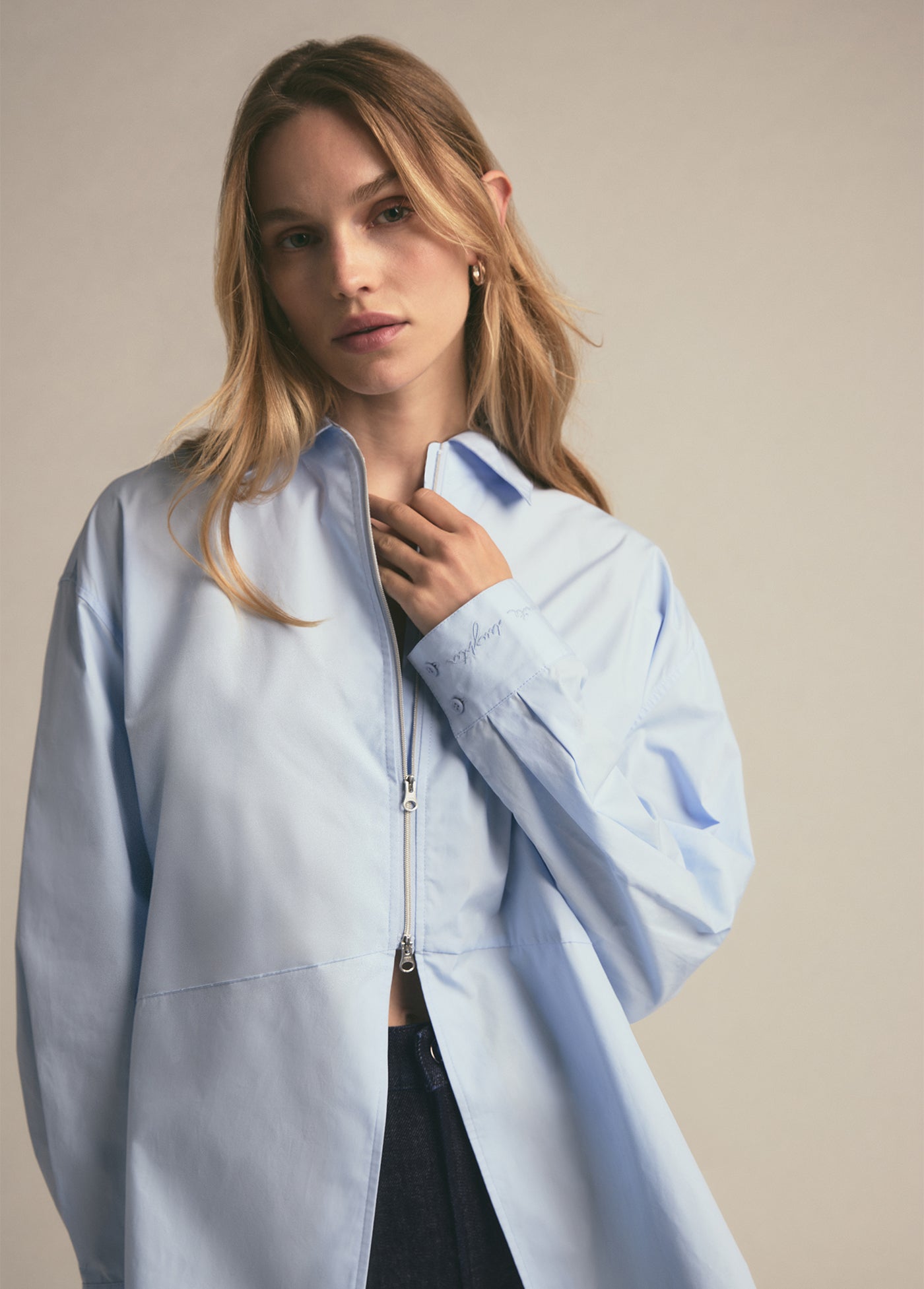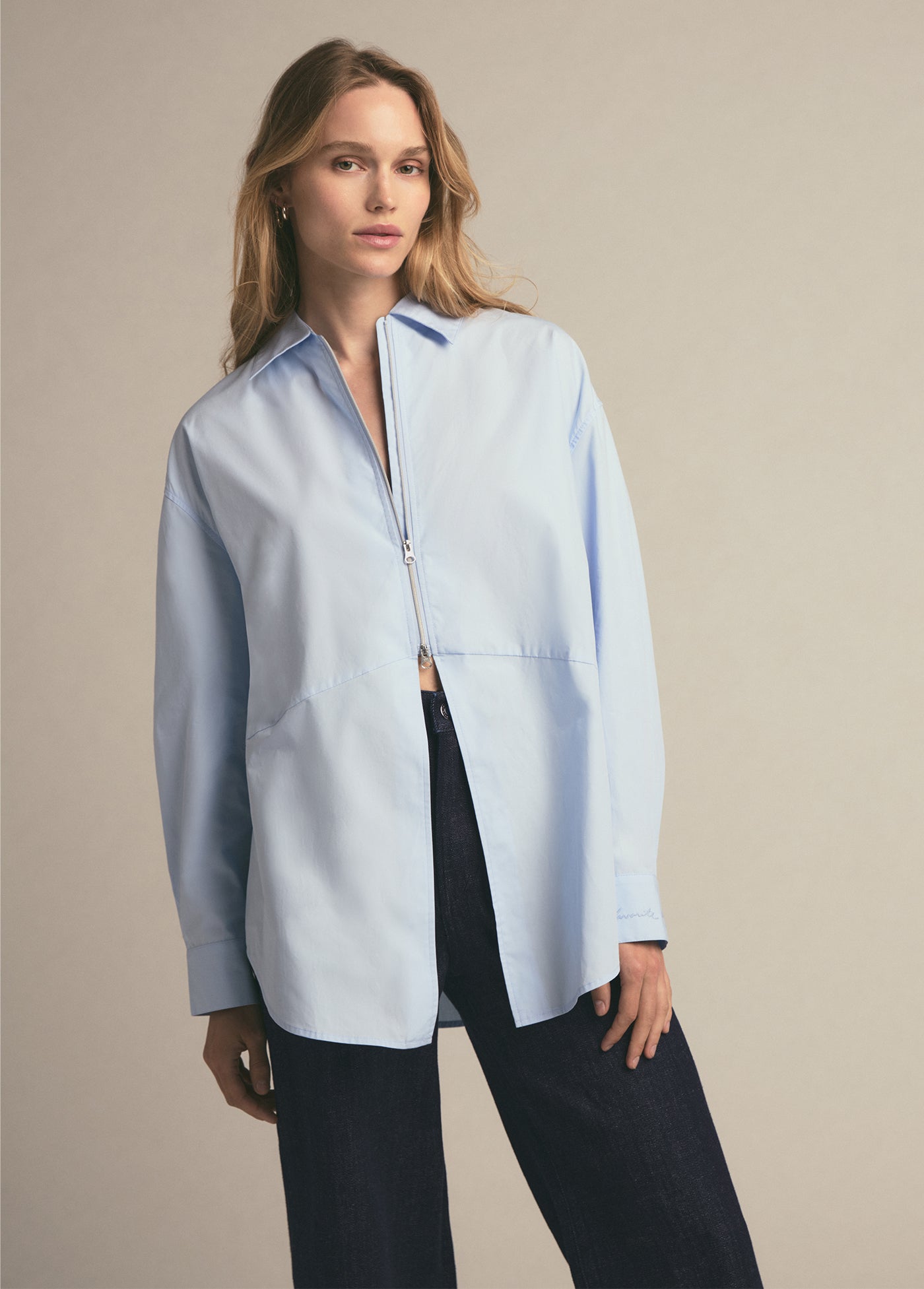 Inspired by our bestseller, The Door's Always Open Ex-Boyfriend Shirt, this oversized button up has a relaxed fit, pointed collar and open hem. It's cut in 100% cotton and is finished with our favorite detail--a front metal zipper.