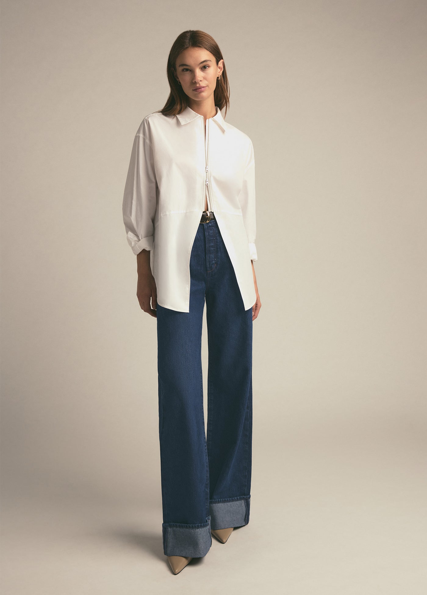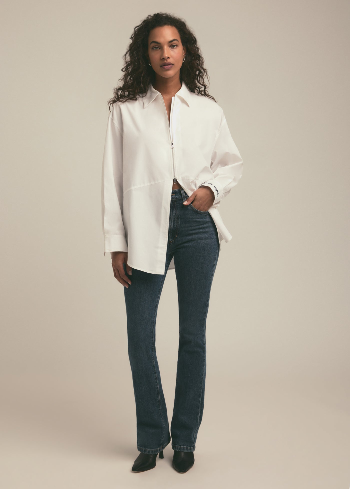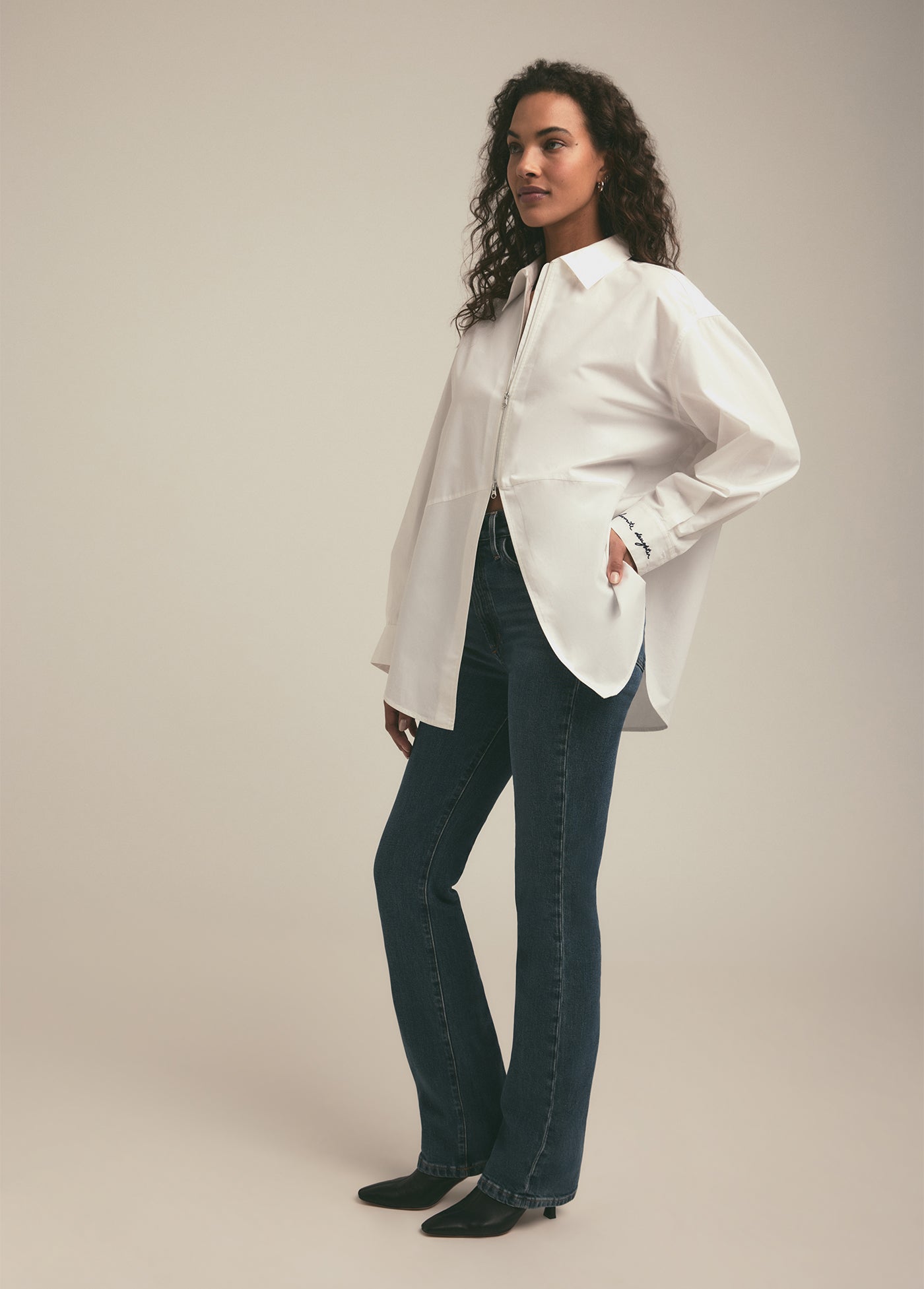 Inspired by our bestseller, The Door's Always Open Ex-Boyfriend Shirt, this oversized button up has a relaxed fit, pointed collar and open hem. It's cut in 100% cotton and is finished with our favorite detail--a front metal zipper.